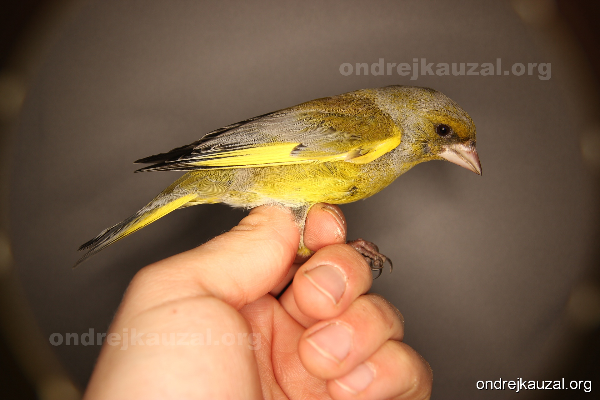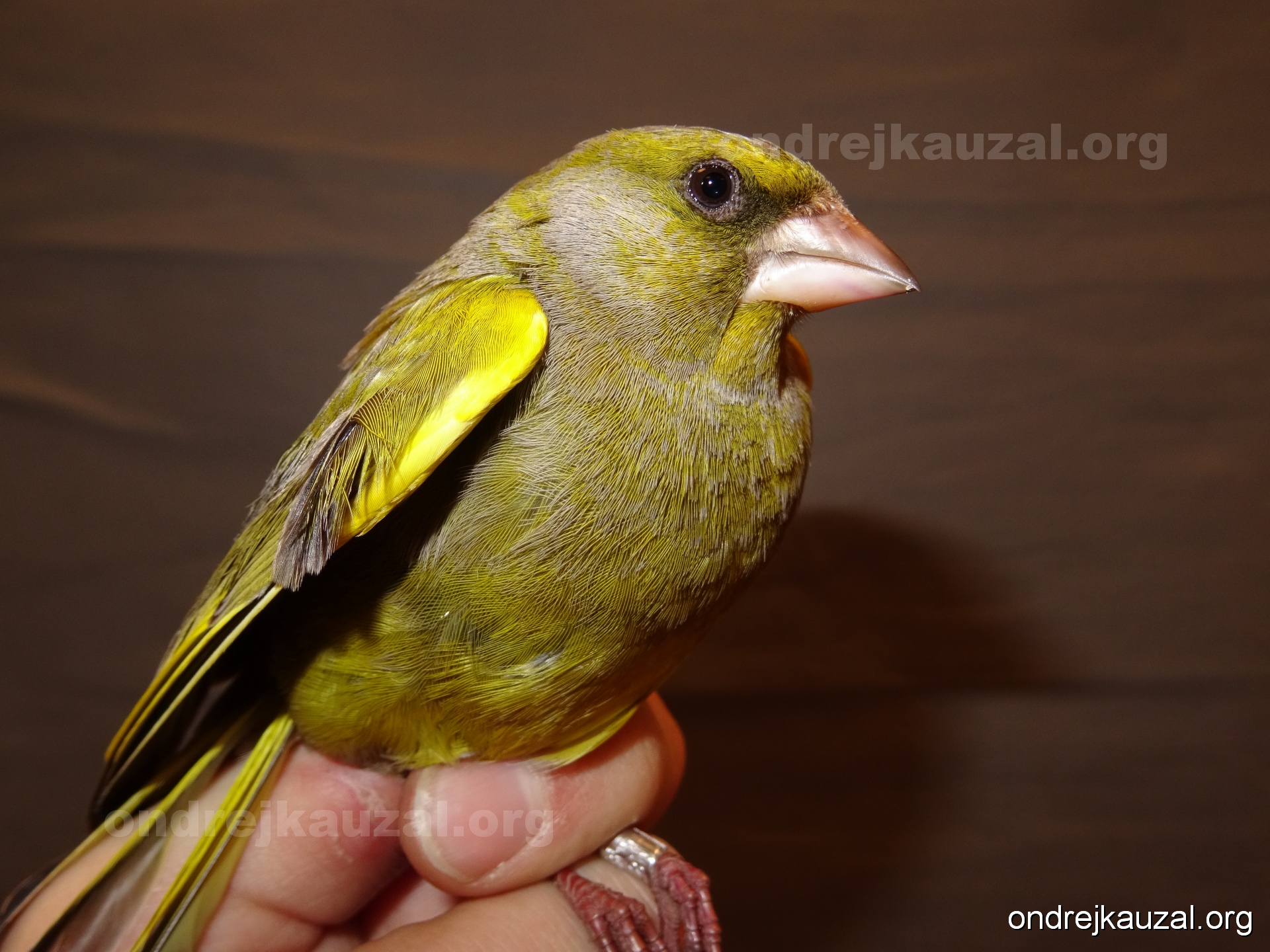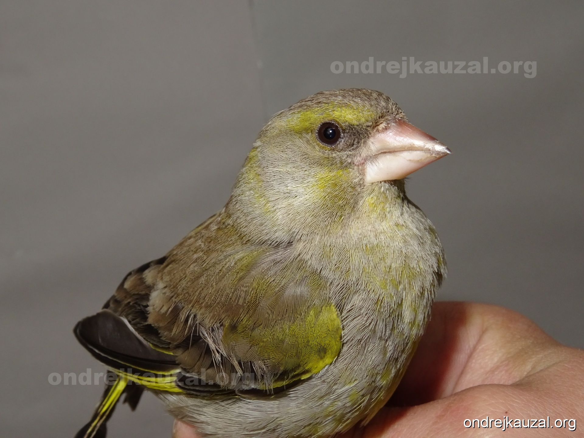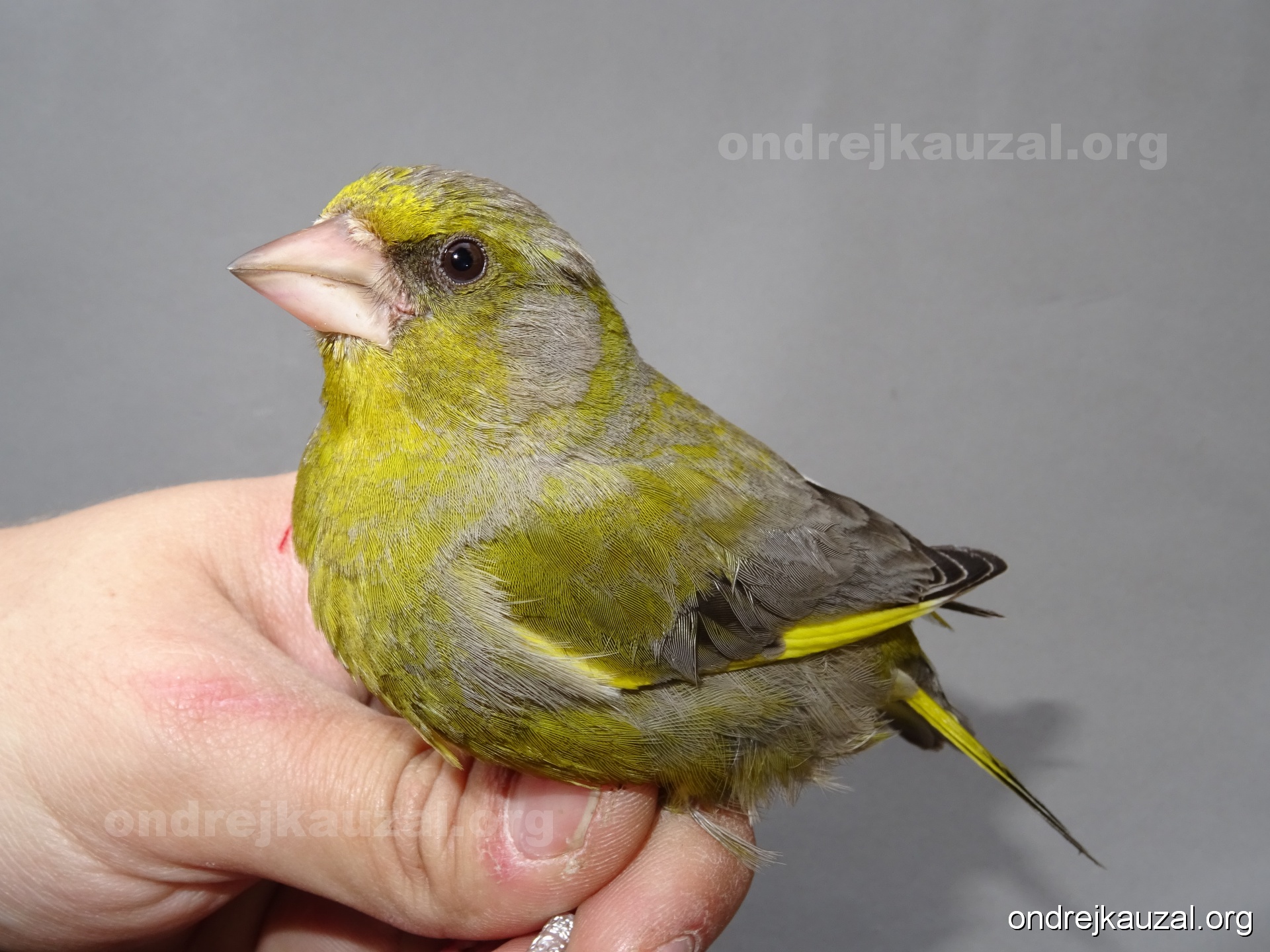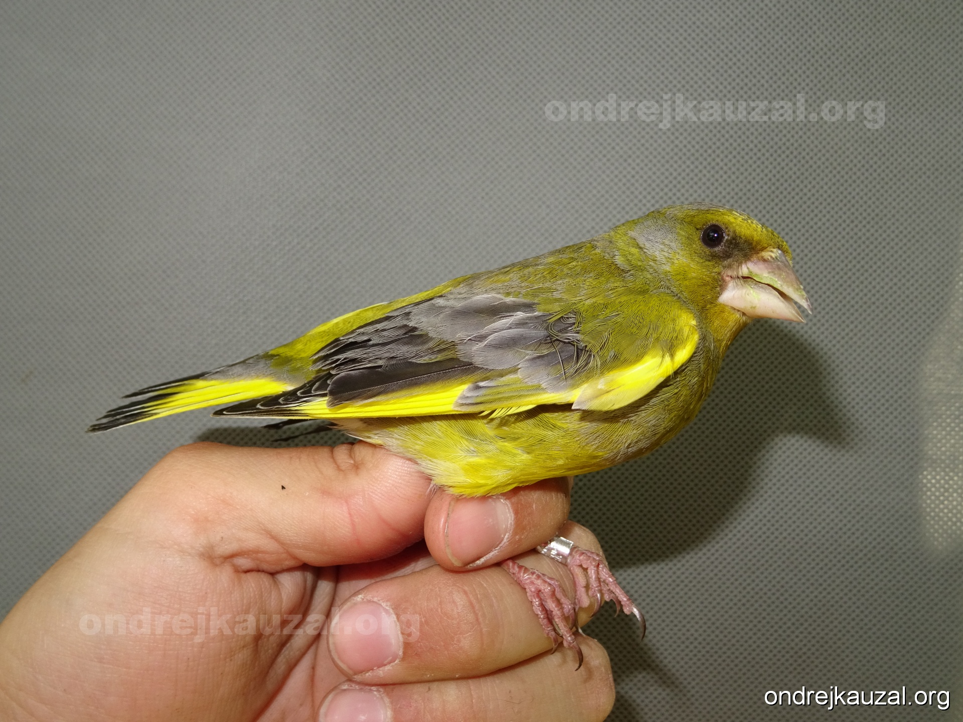 An interesting individual, albeit being in the first year of its life, it has moulted three of its primaries (P5 – P7). Greenfinches occasionally include moult of some primaries during their partial postjuvenile moult.