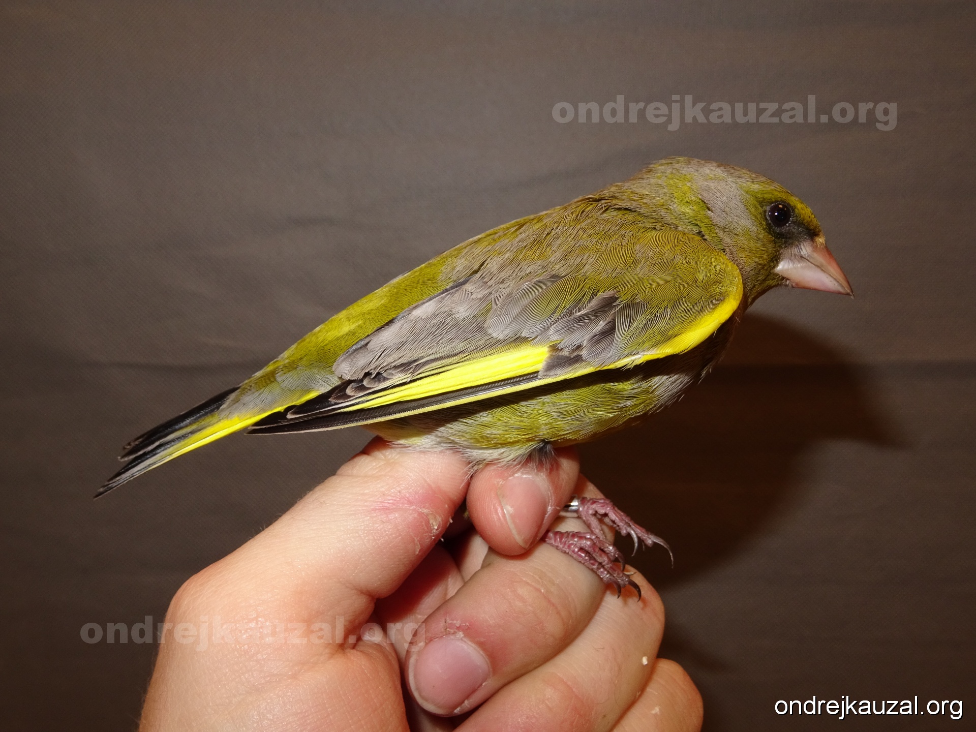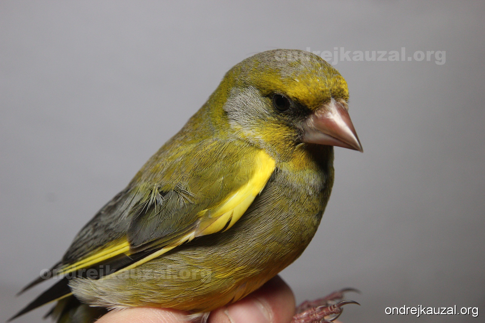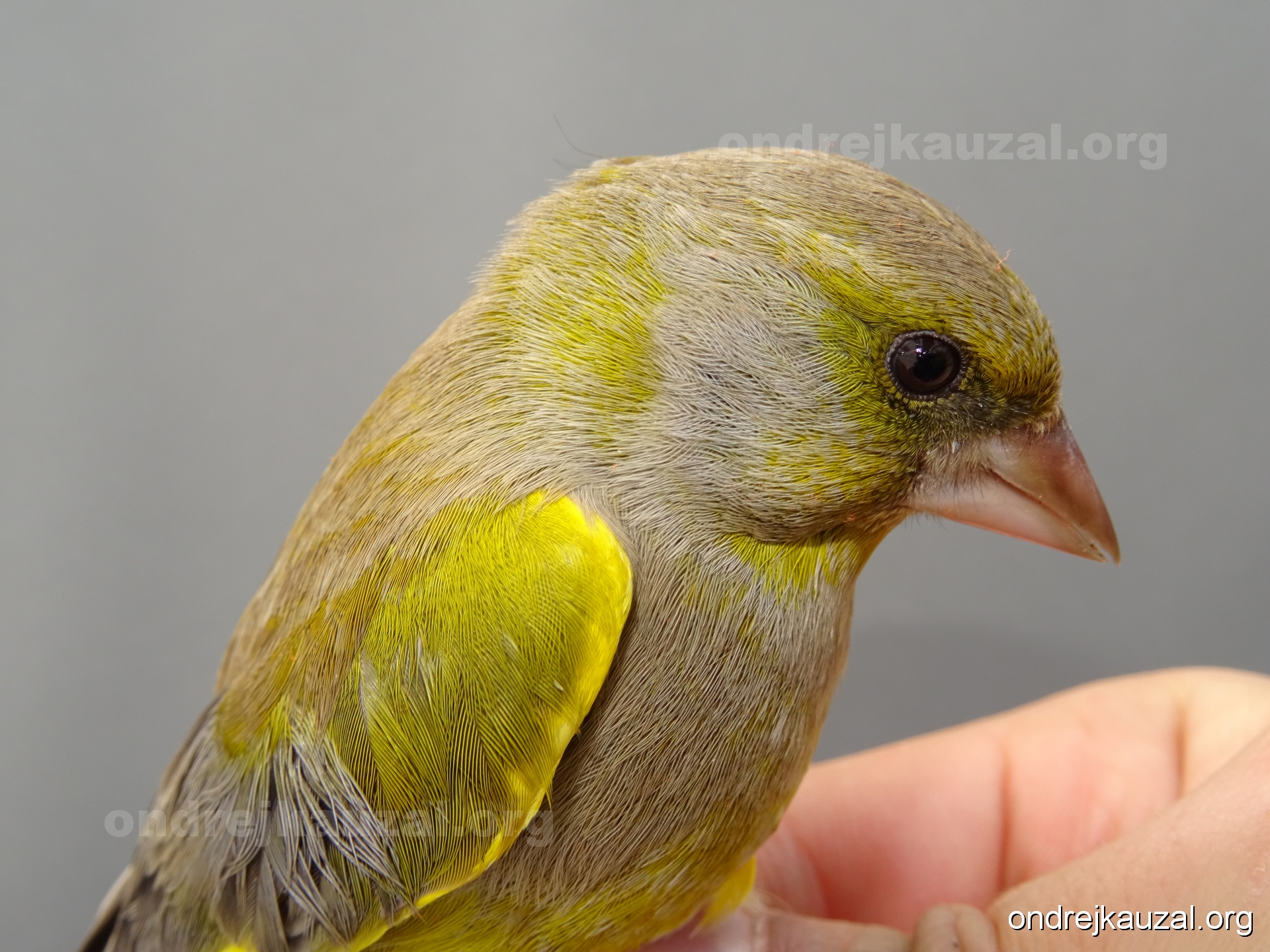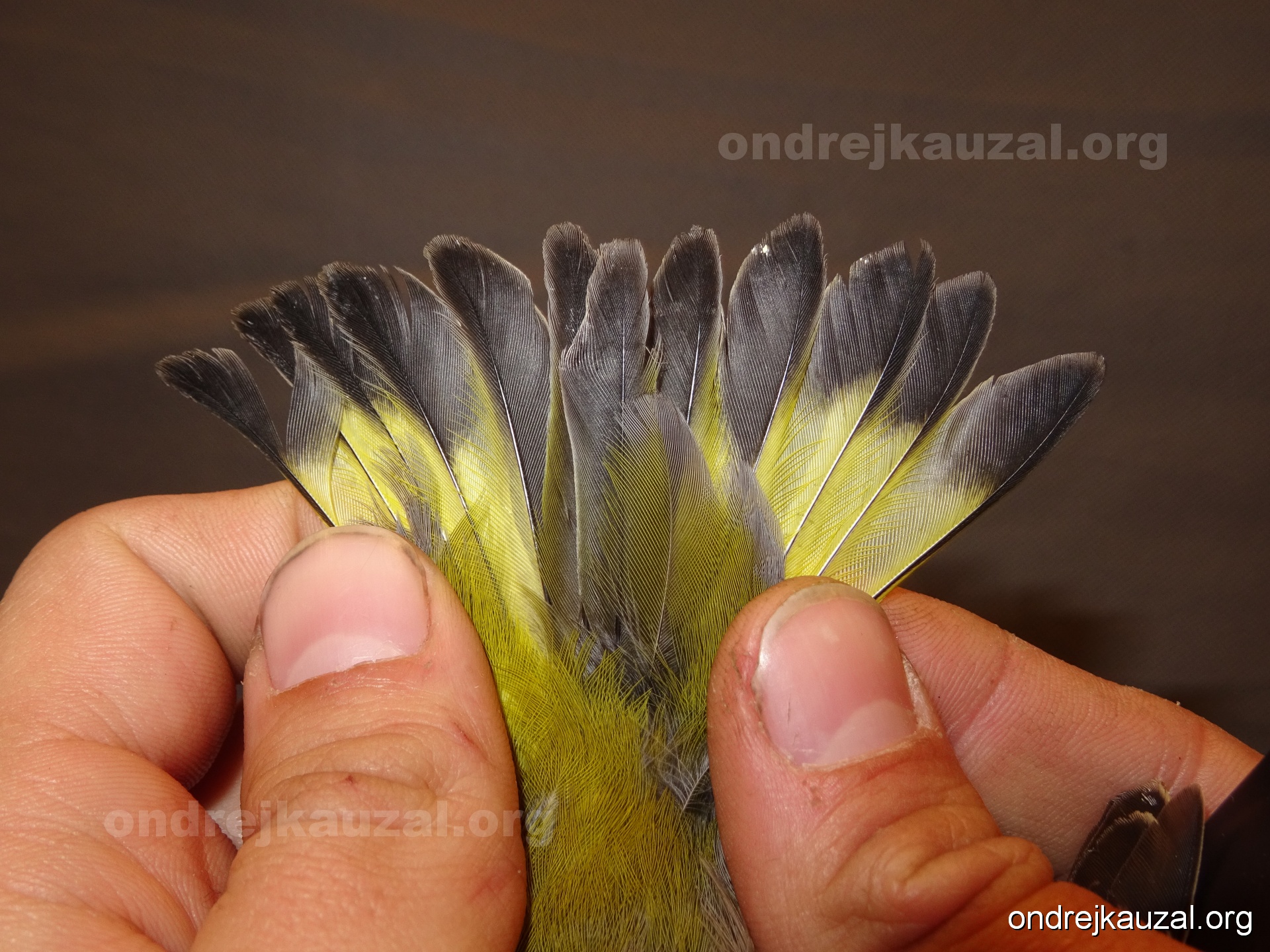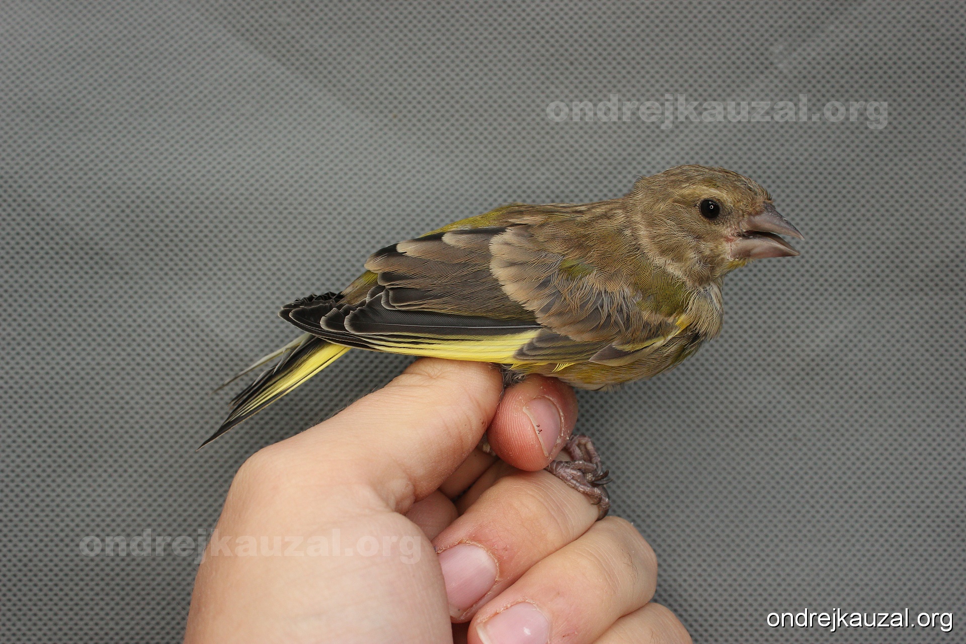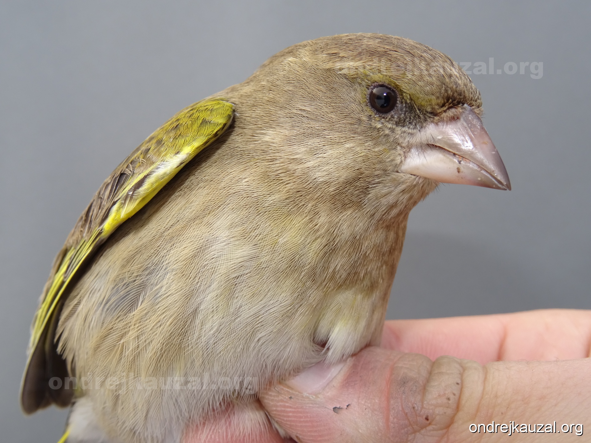 An interesting individual, albeit being in the first year of its life, it has moulted three of its primaries (P5 – P7). Greenfinches occasionally include moult of some primaries during their partial postjuvenile moult.