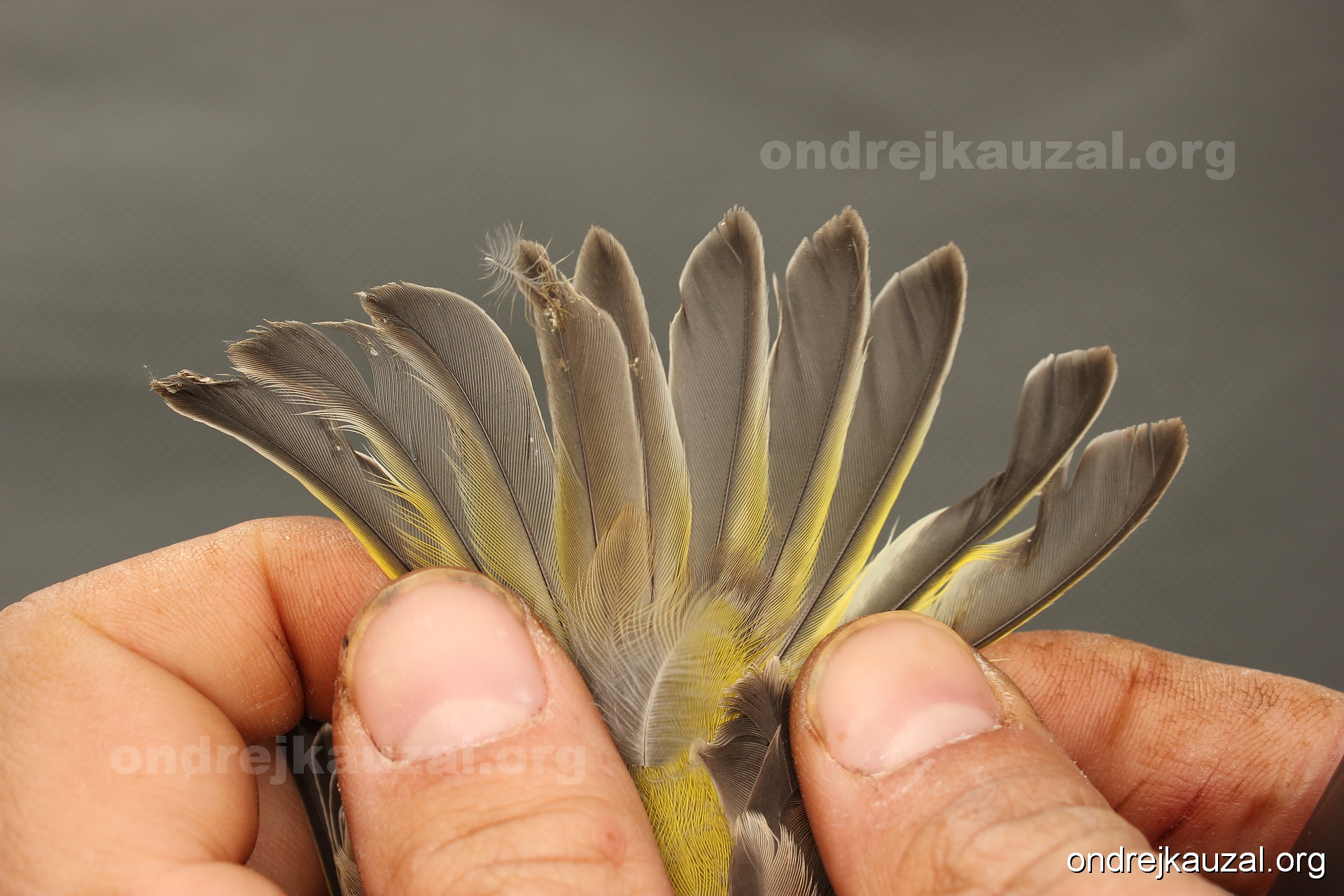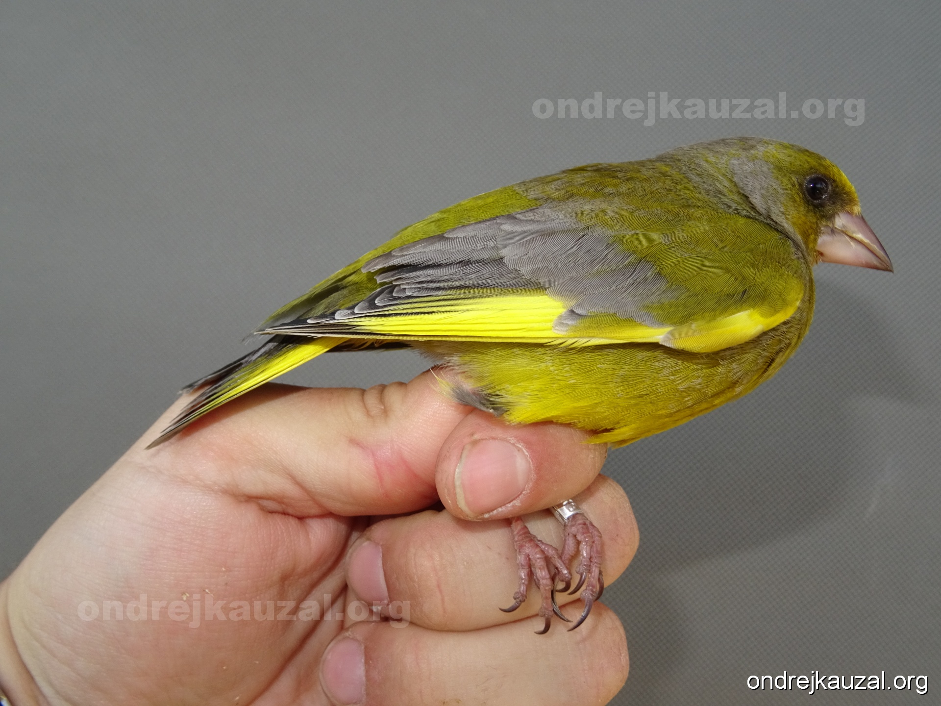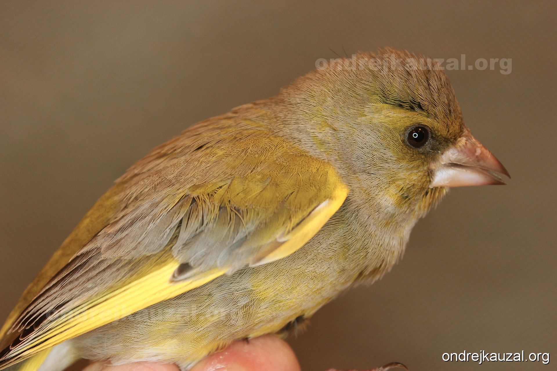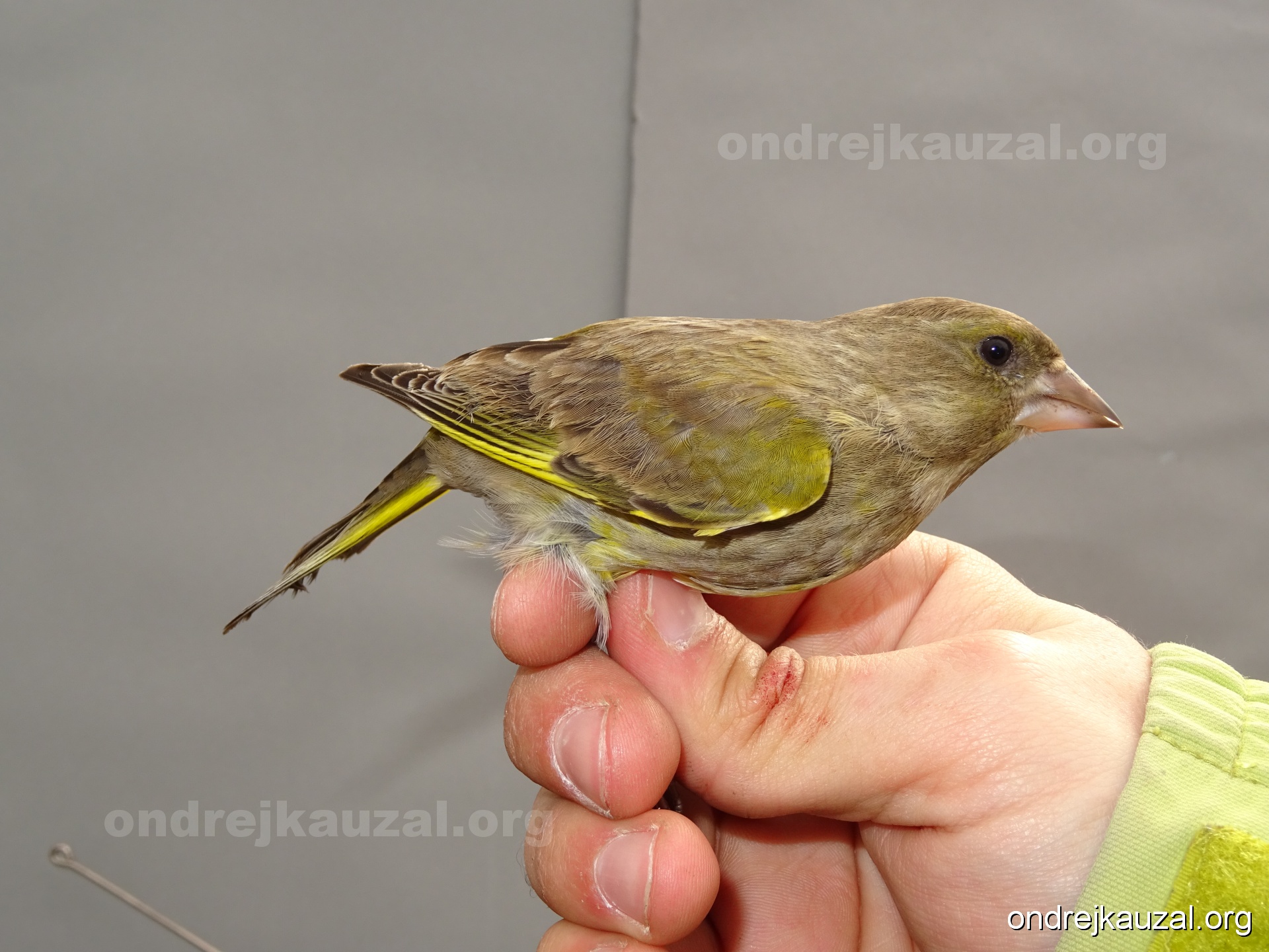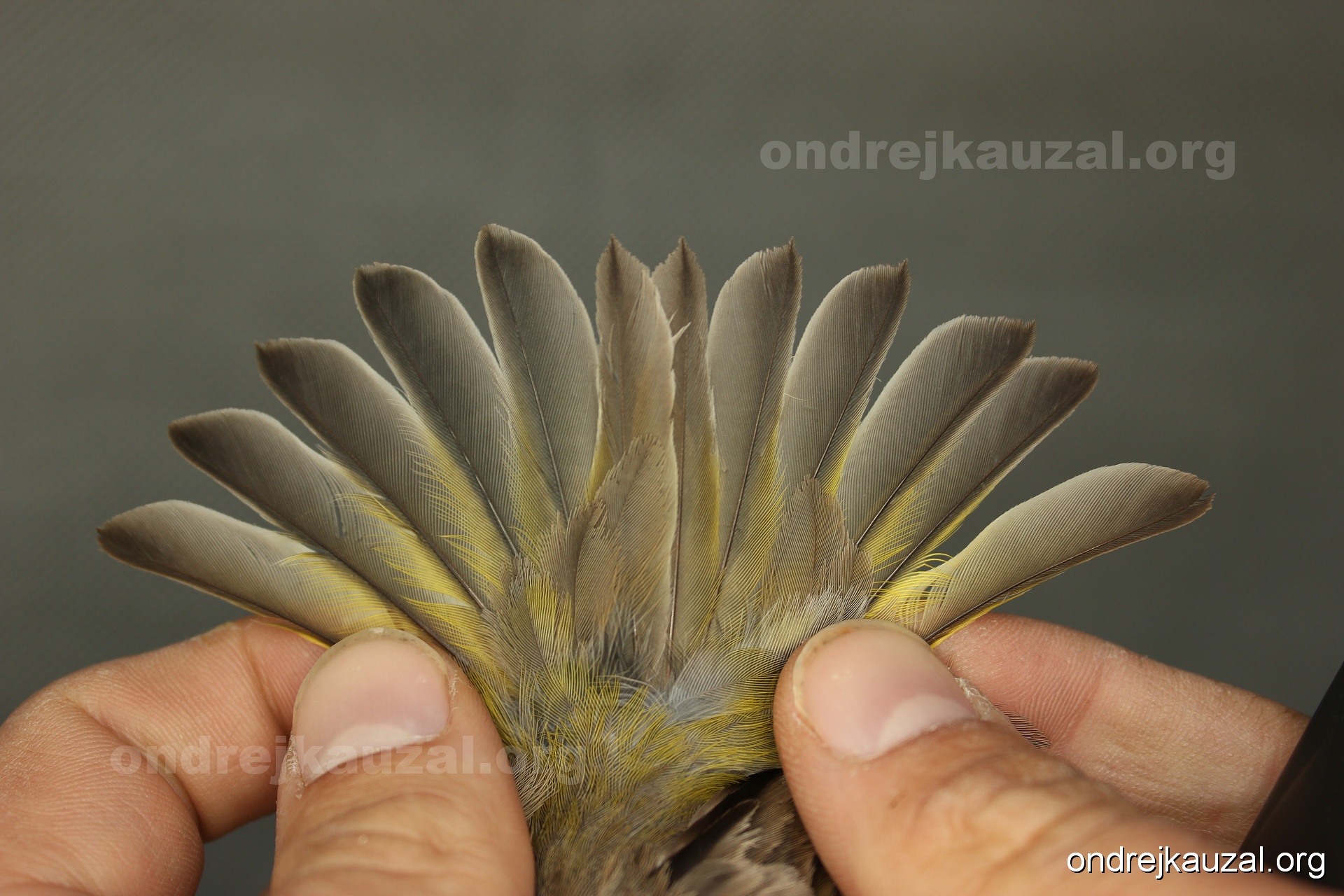 An interesting individual, albeit being in the first year of its life, it has moulted three of its primaries (P5 – P7). Greenfinches occasionally include moult of some primaries during their partial postjuvenile moult.