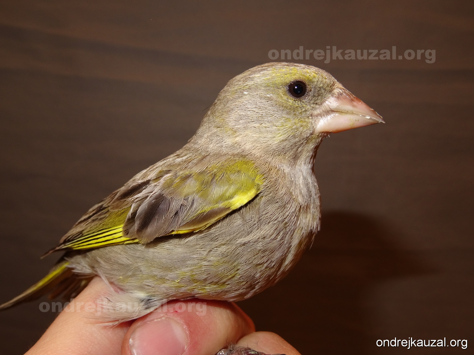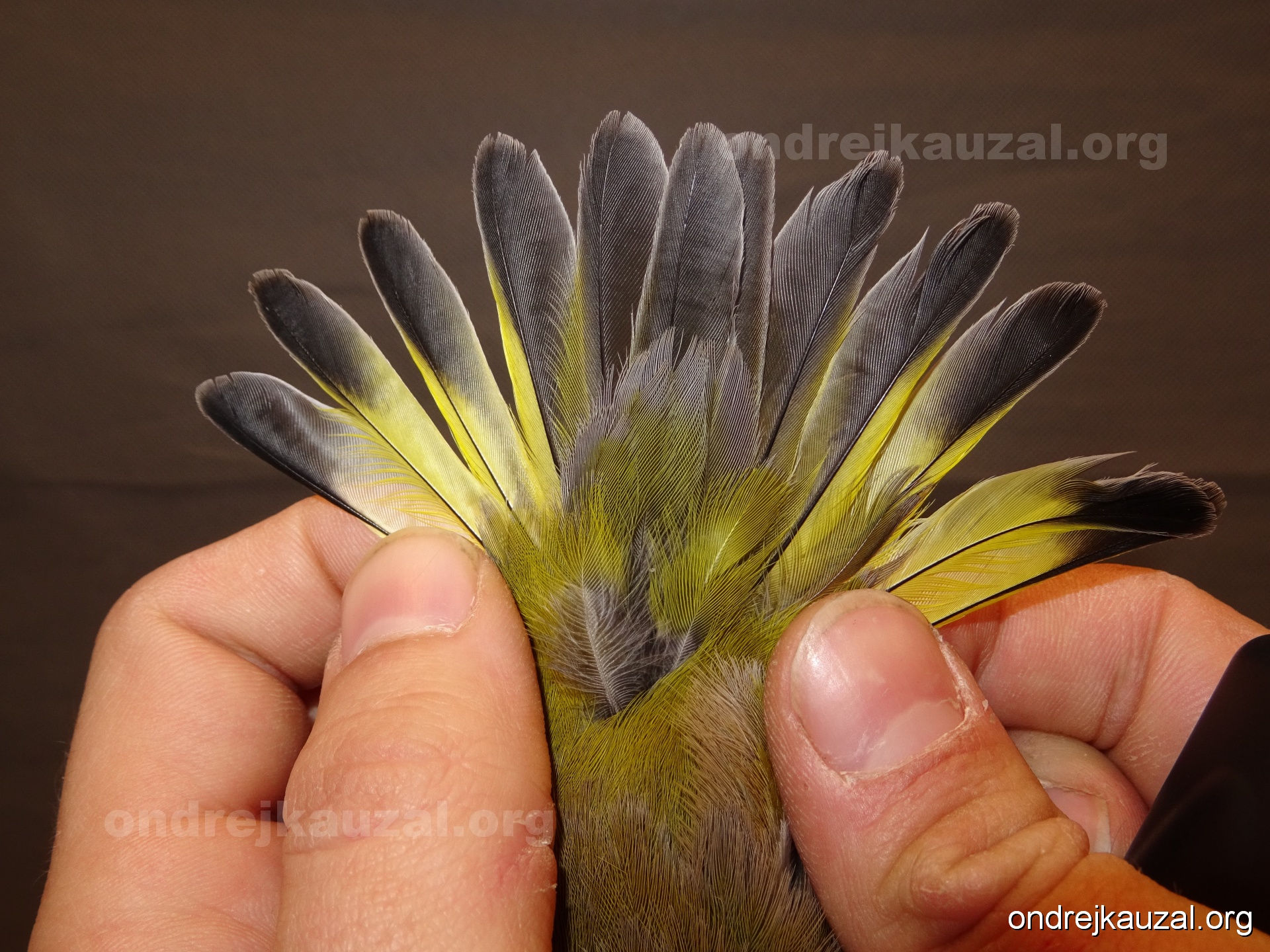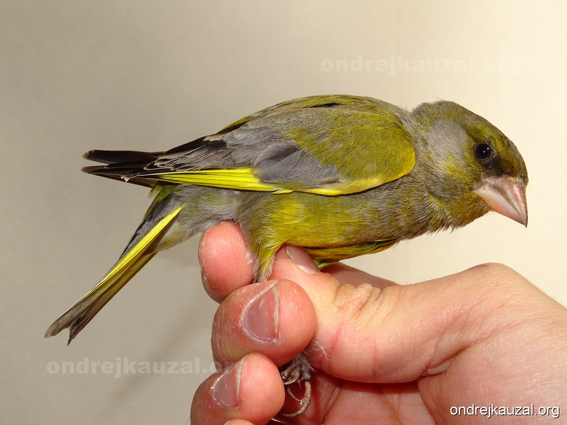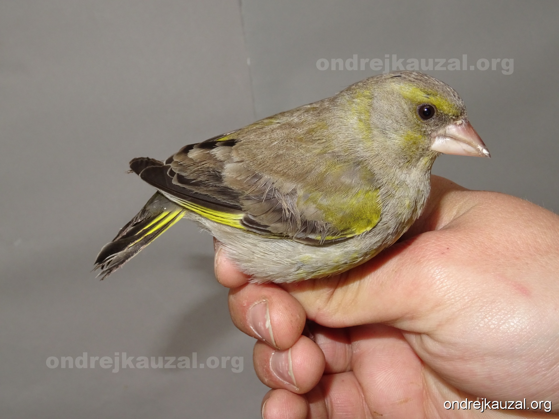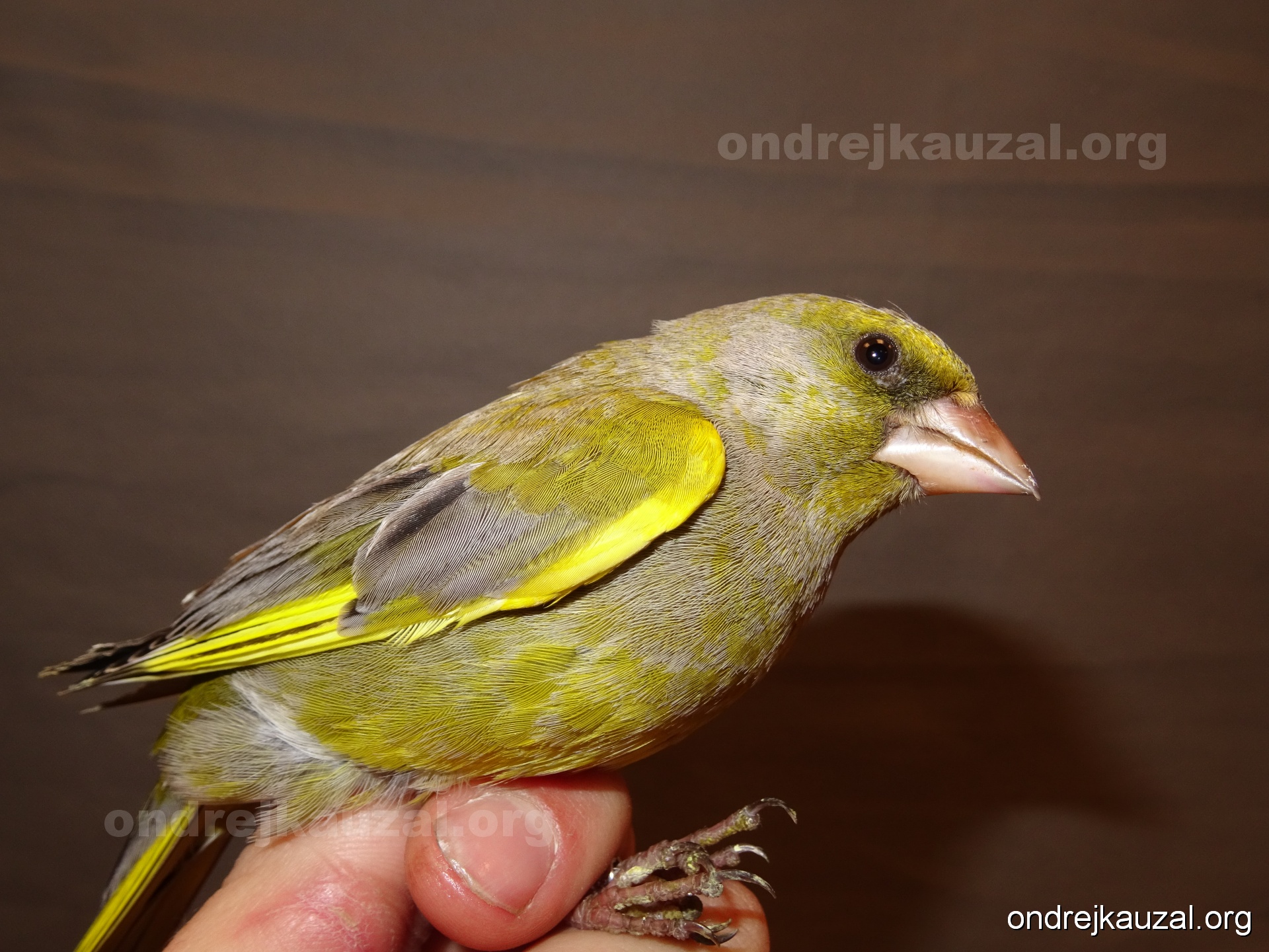 An interesting individual, albeit being in the first year of its life, it has moulted three of its primaries (P5 – P7). Greenfinches occasionally include moult of some primaries during their partial postjuvenile moult.