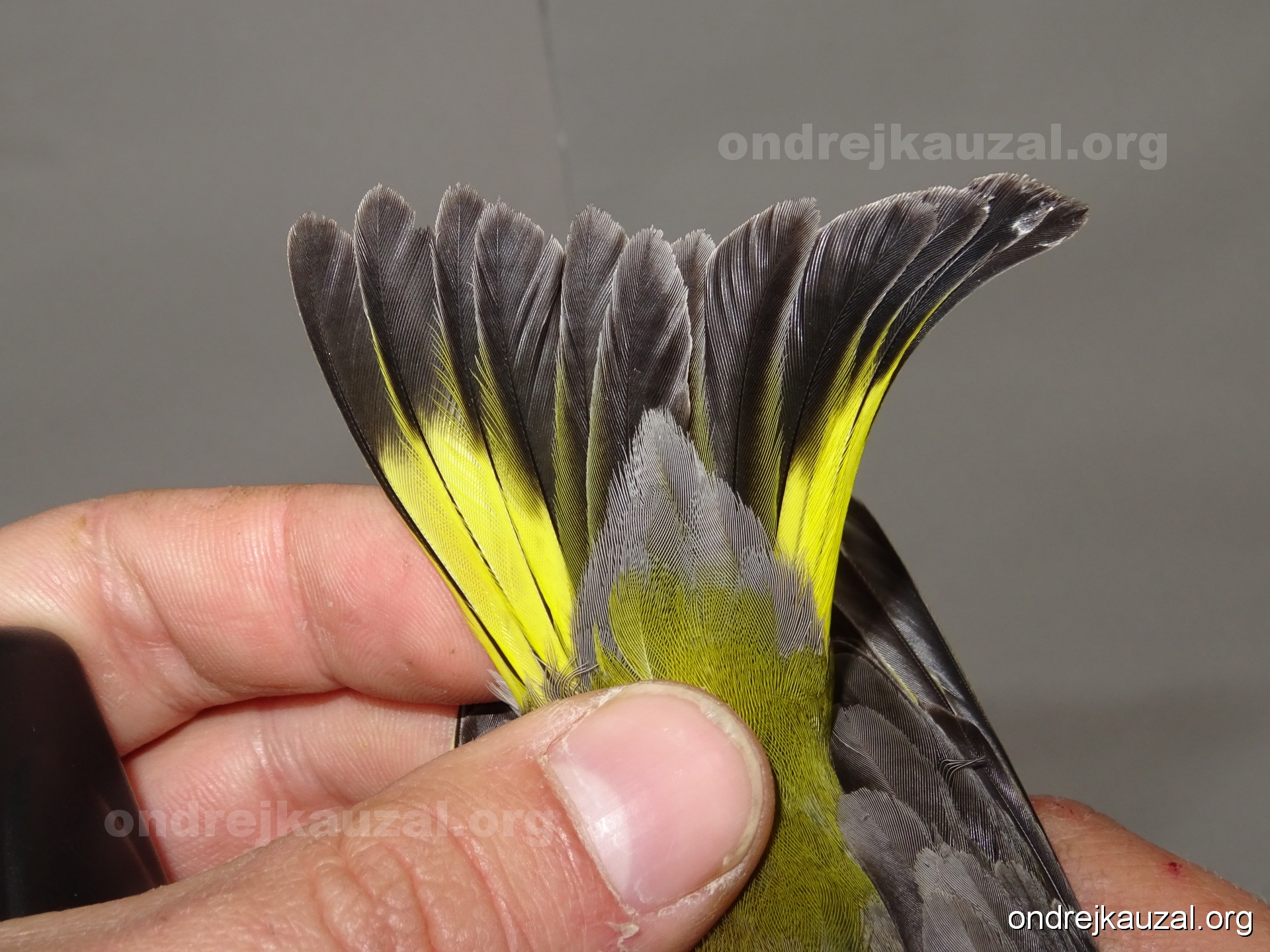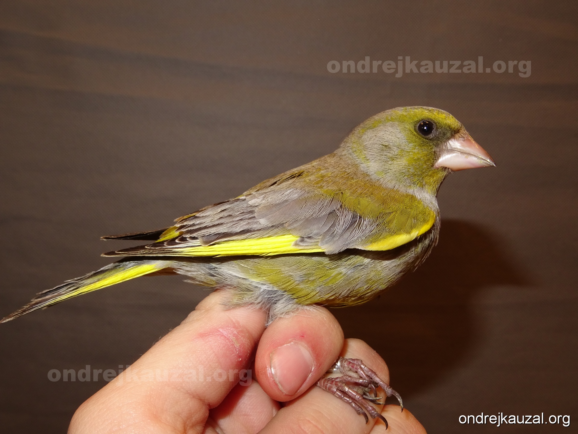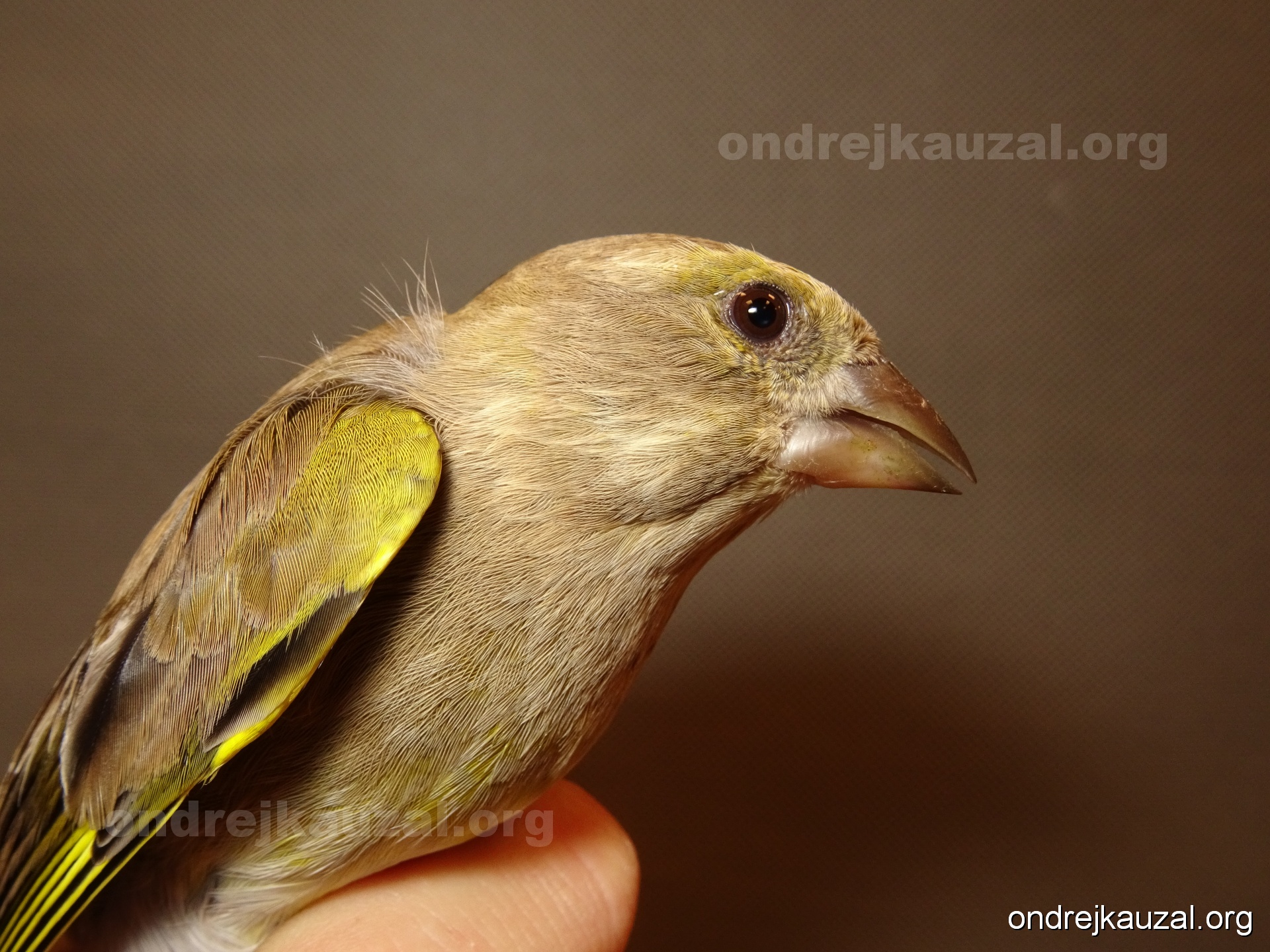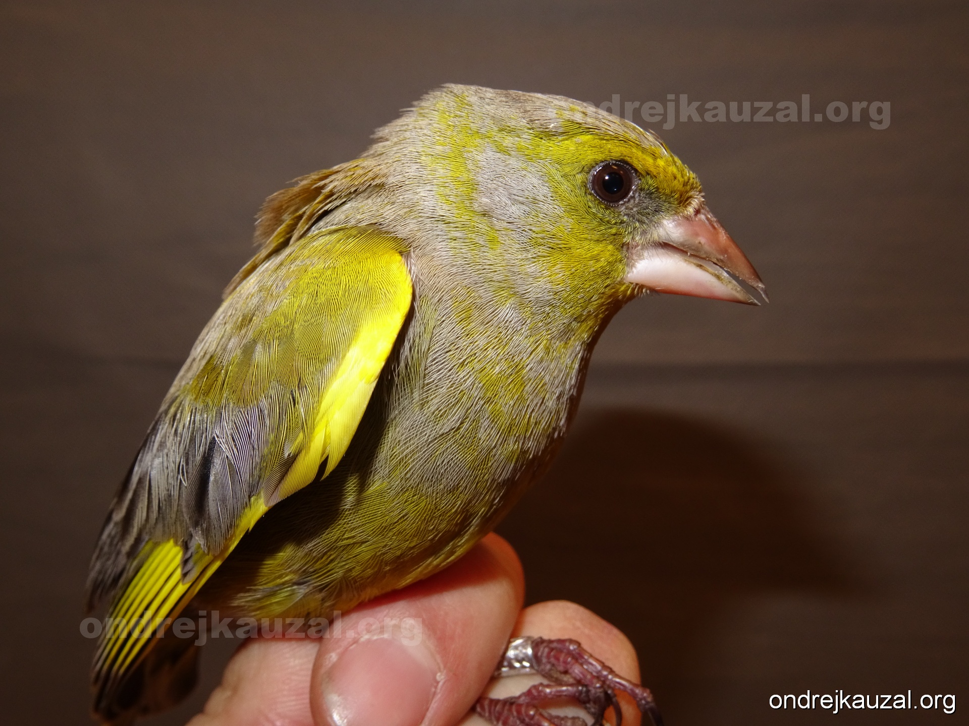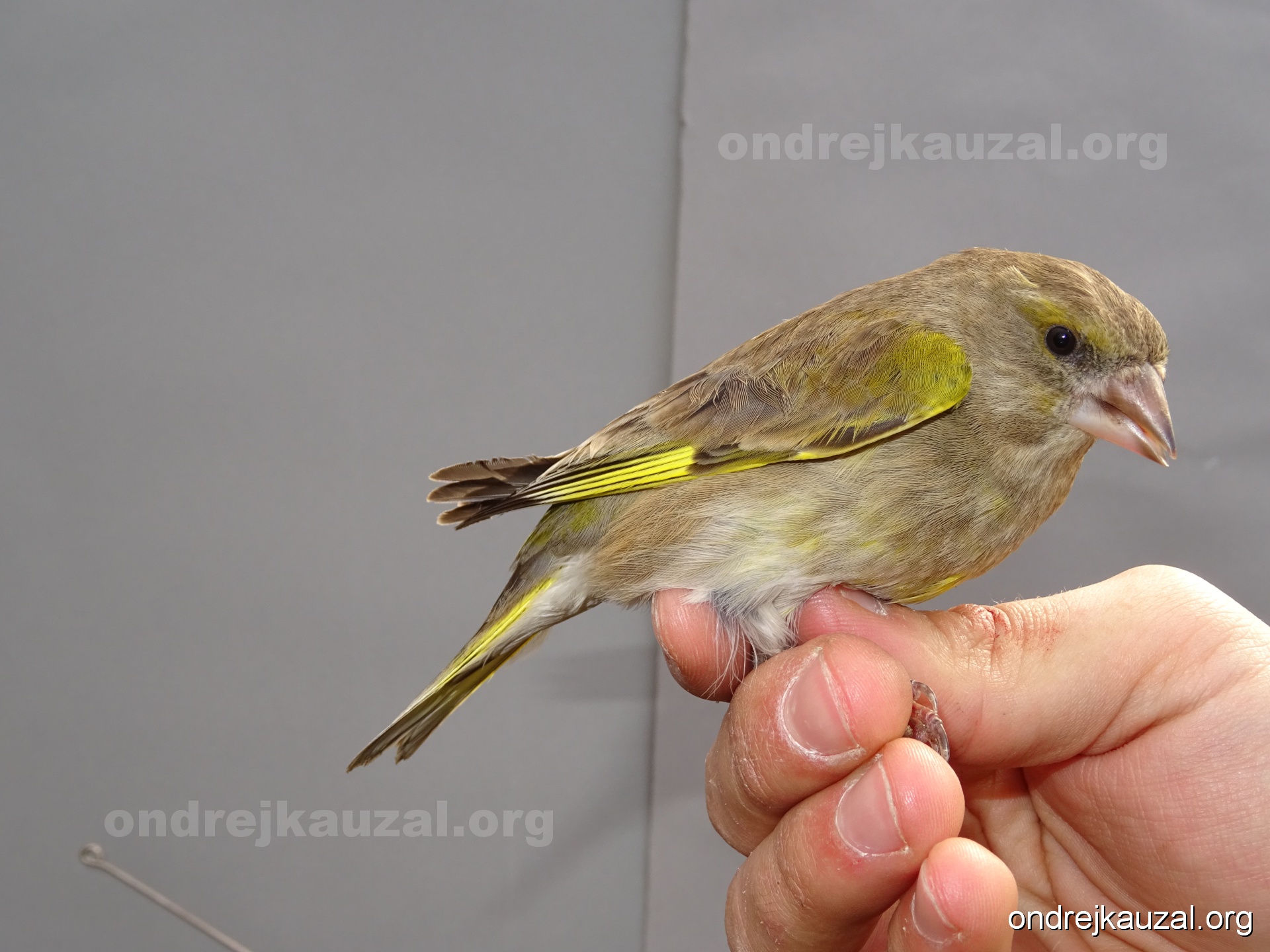 An interesting individual, albeit being in the first year of its life, it has moulted three of its primaries (P5 – P7). Greenfinches occasionally include moult of some primaries during their partial postjuvenile moult.