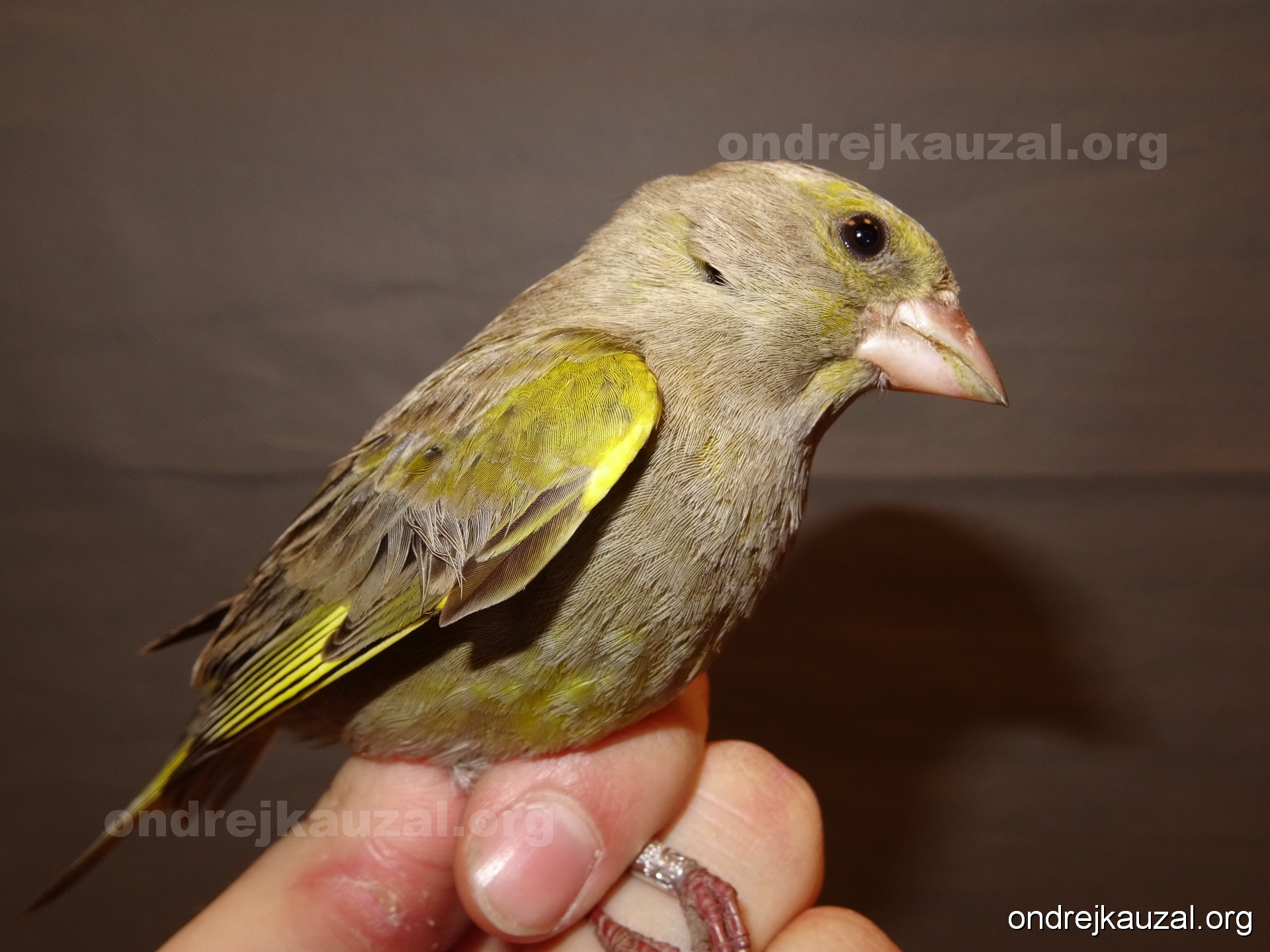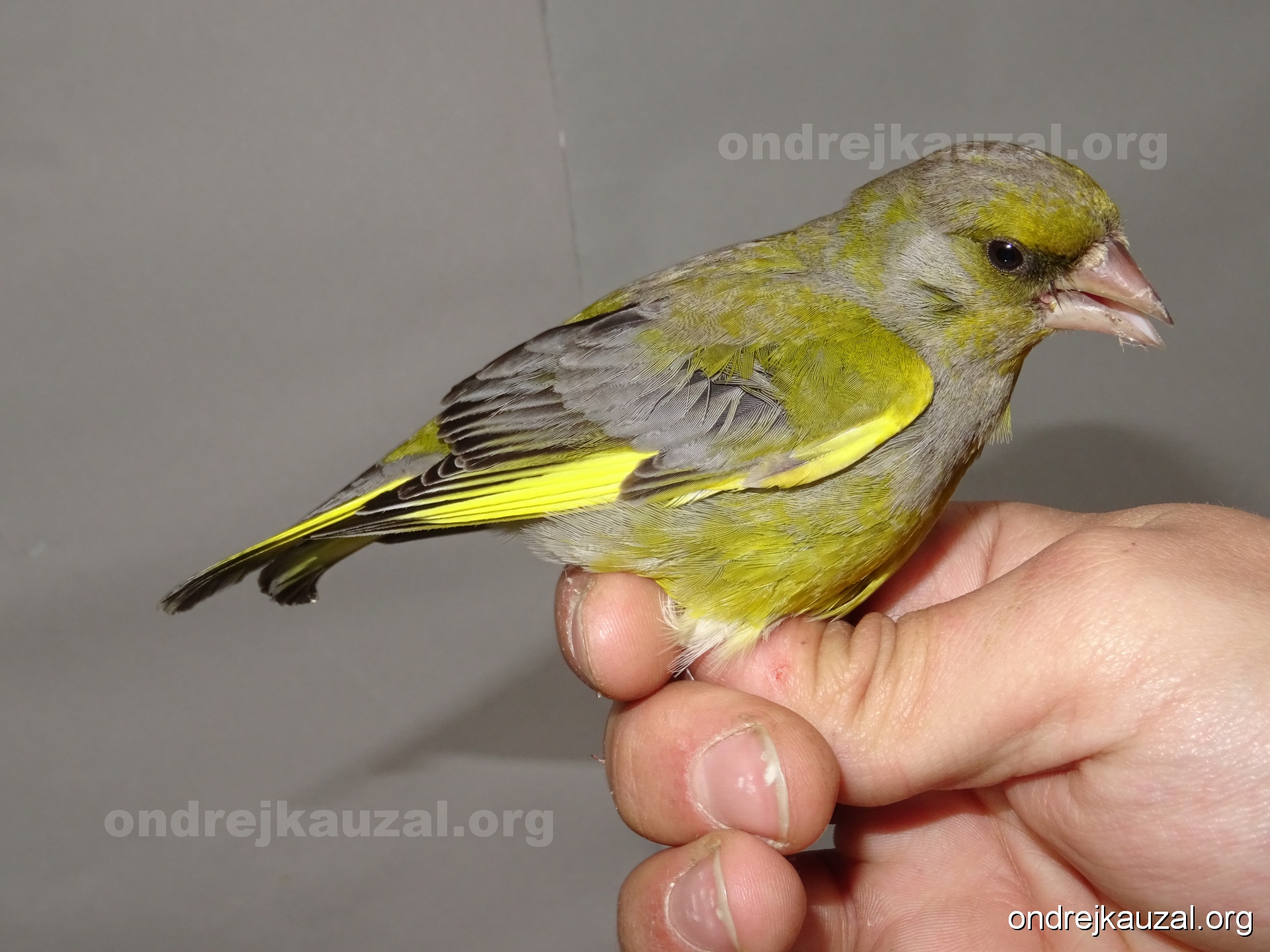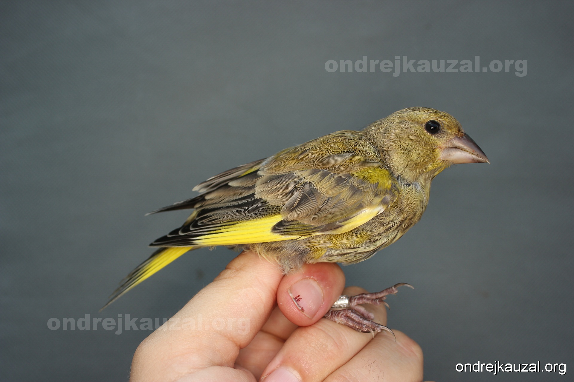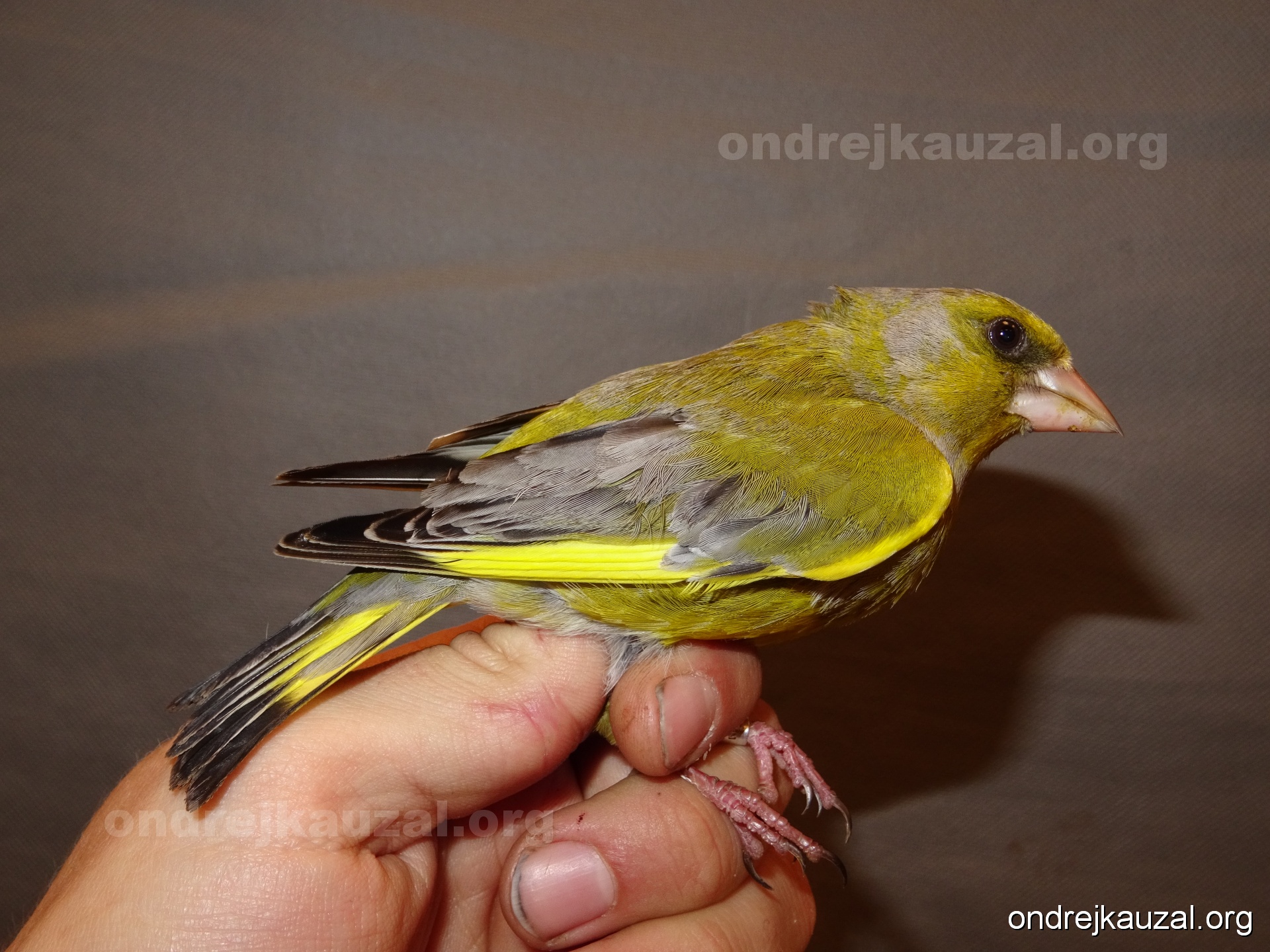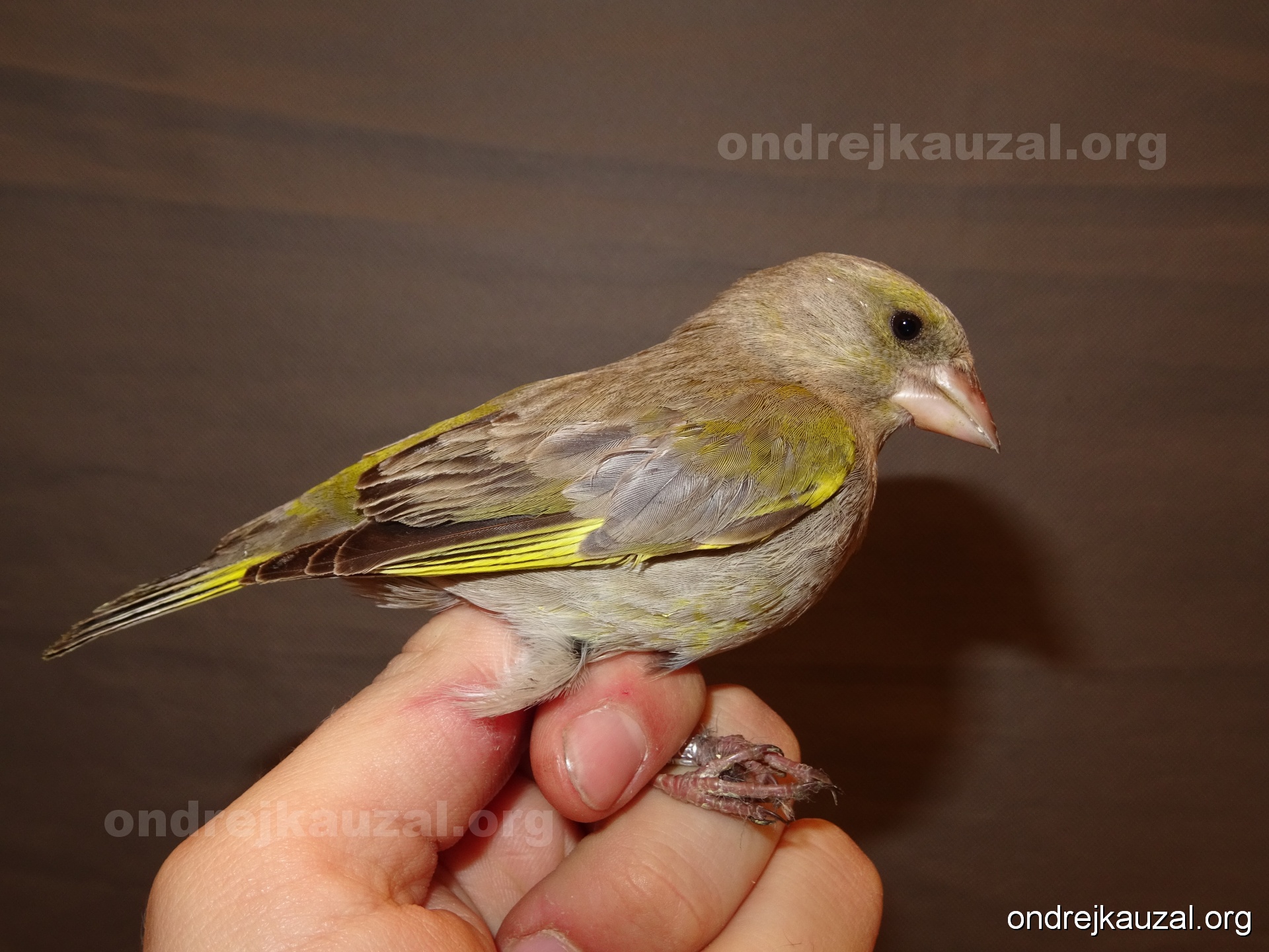 An interesting individual, albeit being in the first year of its life, it has moulted three of its primaries (P5 – P7). Greenfinches occasionally include moult of some primaries during their partial postjuvenile moult.