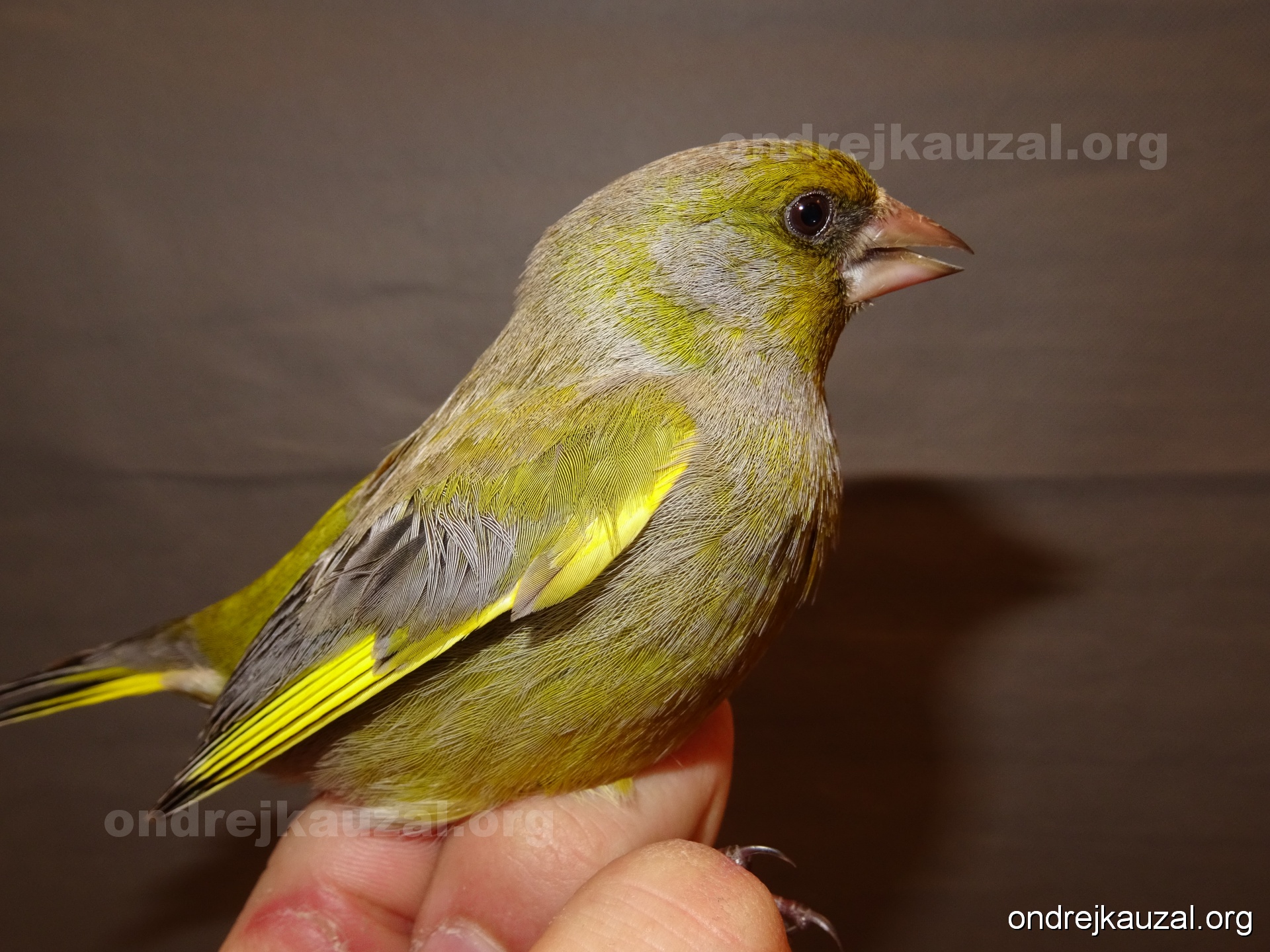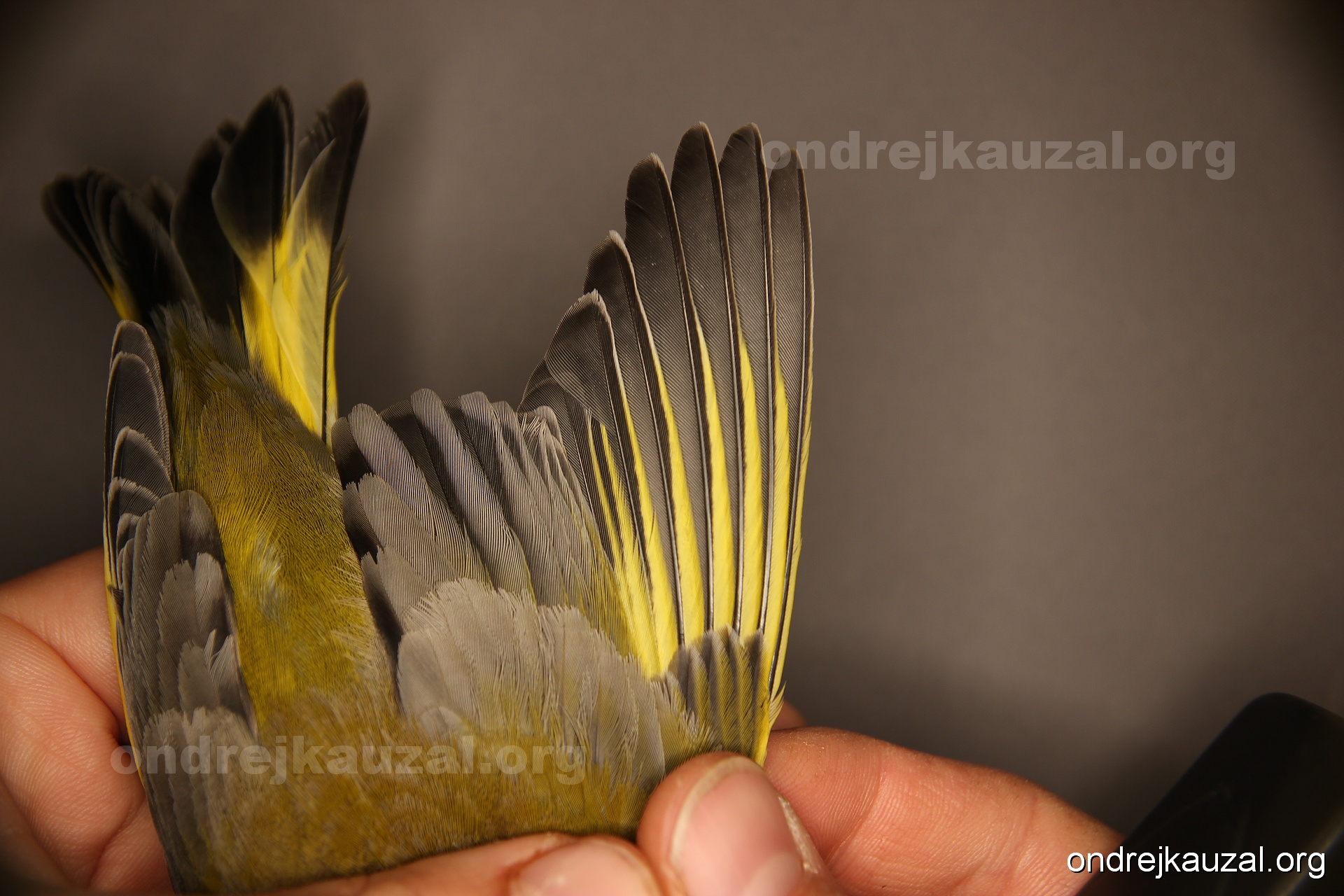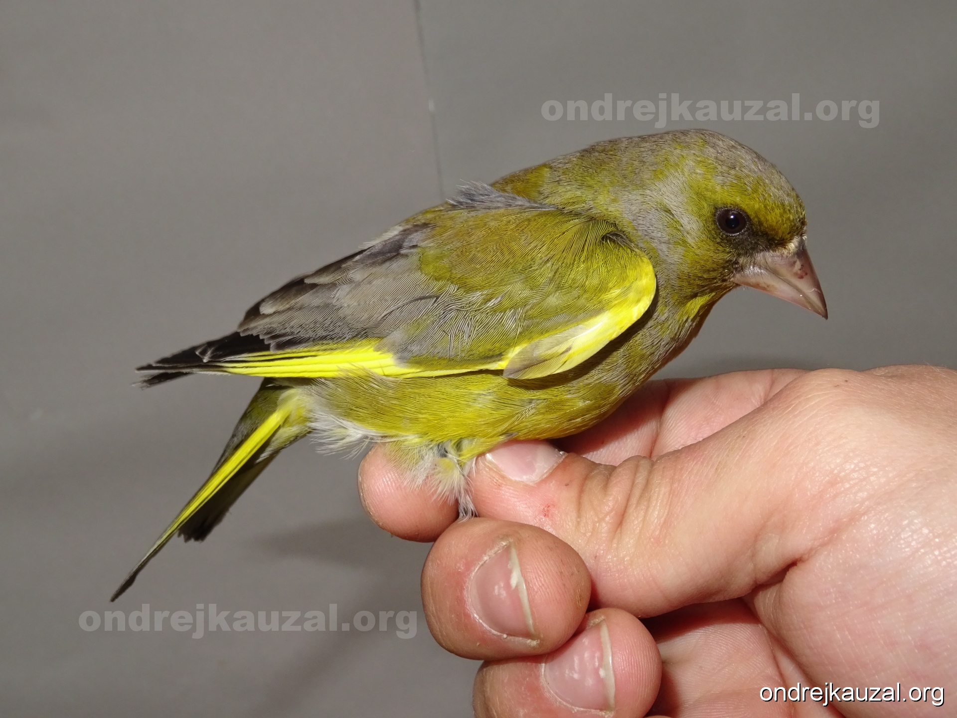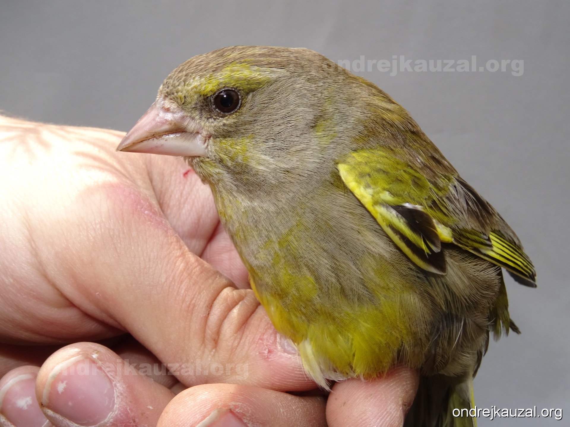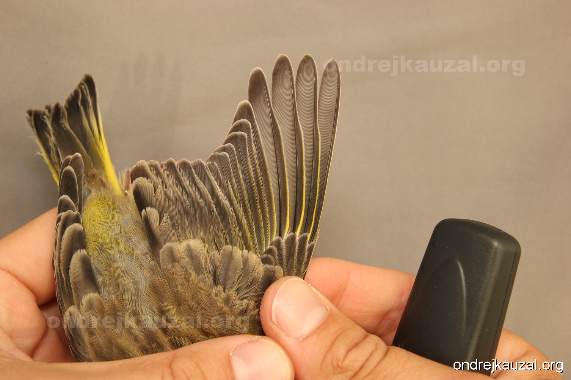 An interesting individual, albeit being in the first year of its life, it has moulted three of its primaries (P5 – P7). Greenfinches occasionally include moult of some primaries during their partial postjuvenile moult.