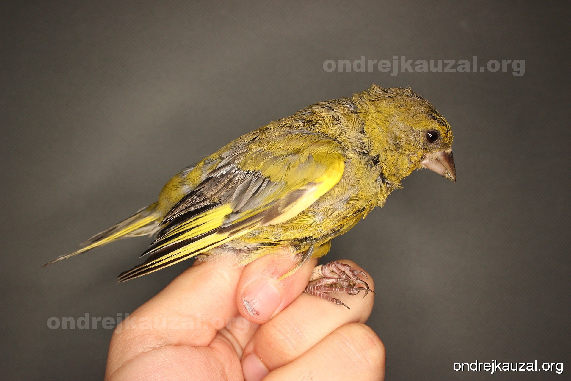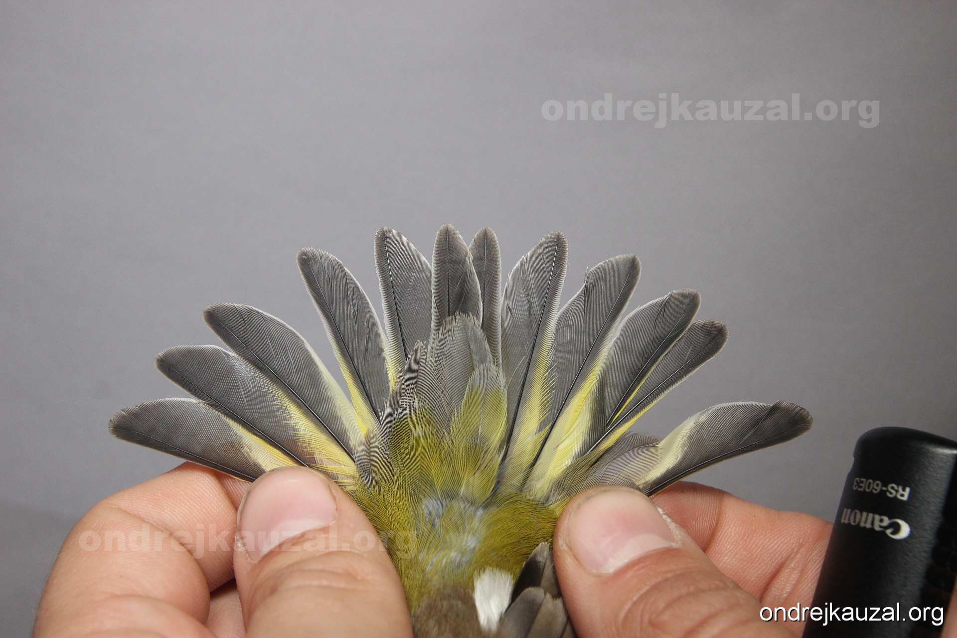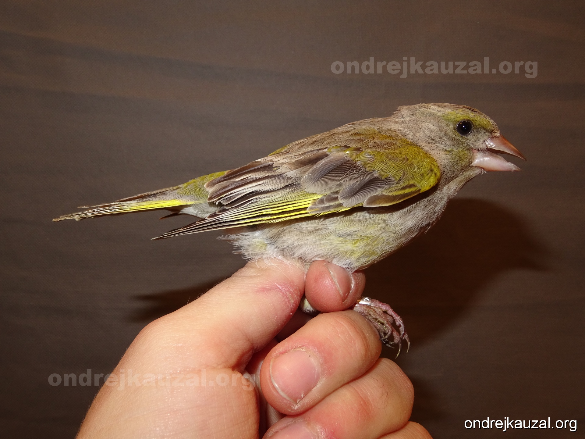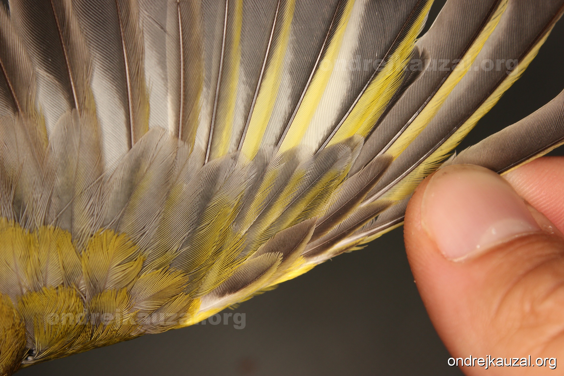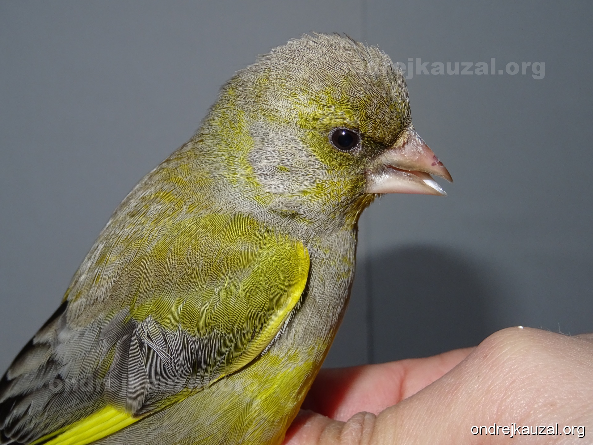 An interesting individual, albeit being in the first year of its life, it has moulted three of its primaries (P5 – P7). Greenfinches occasionally include moult of some primaries during their partial postjuvenile moult.