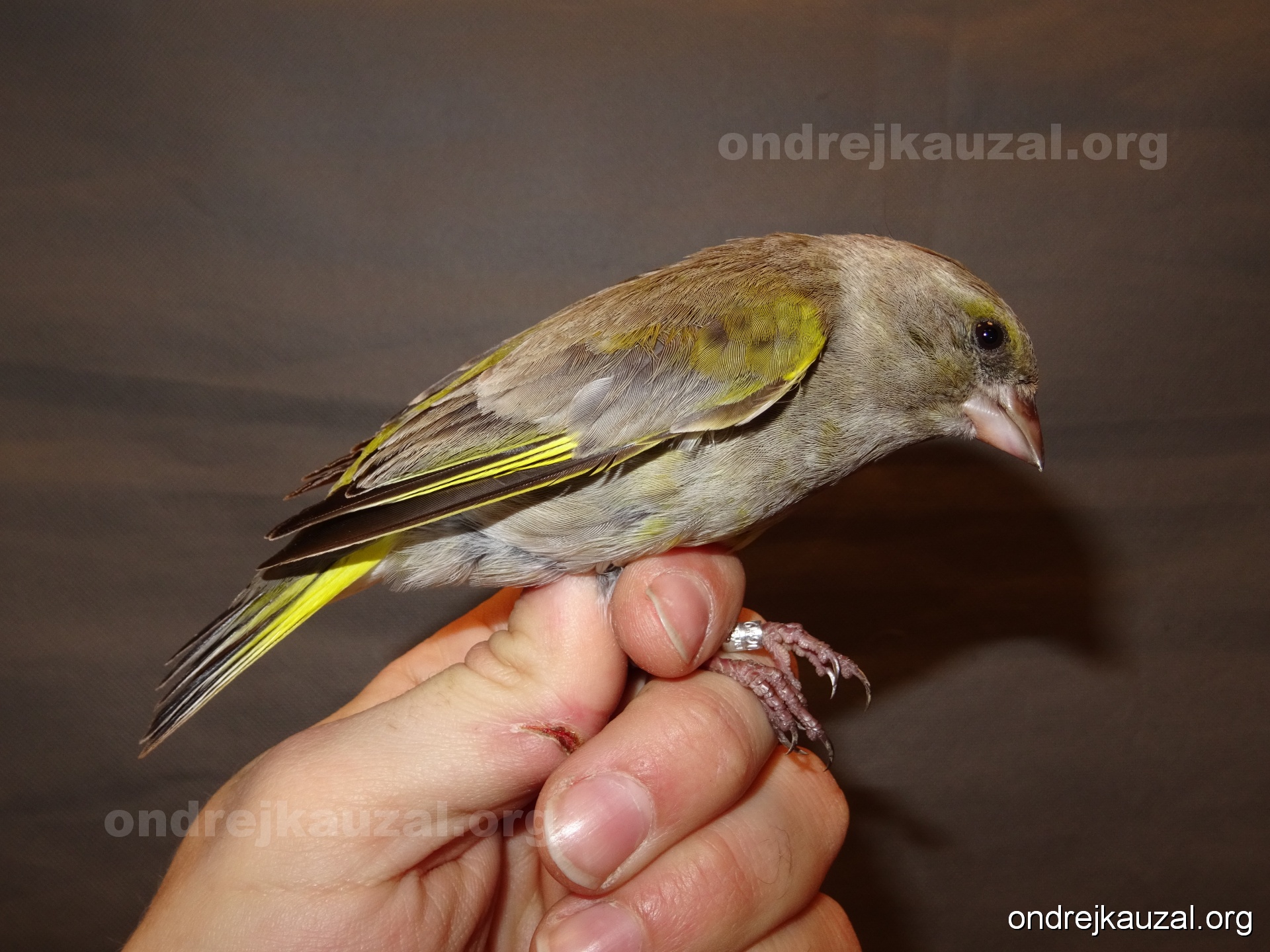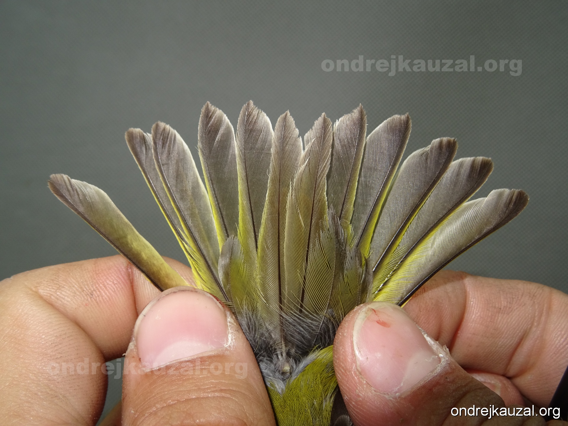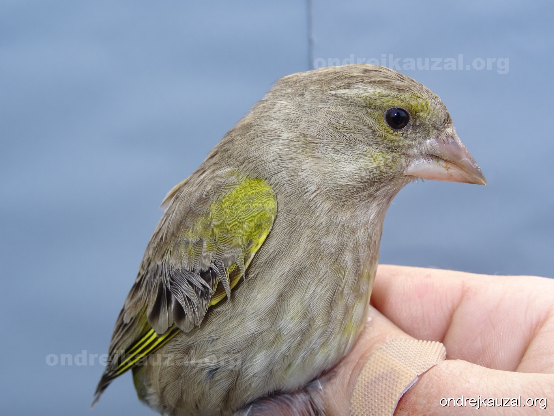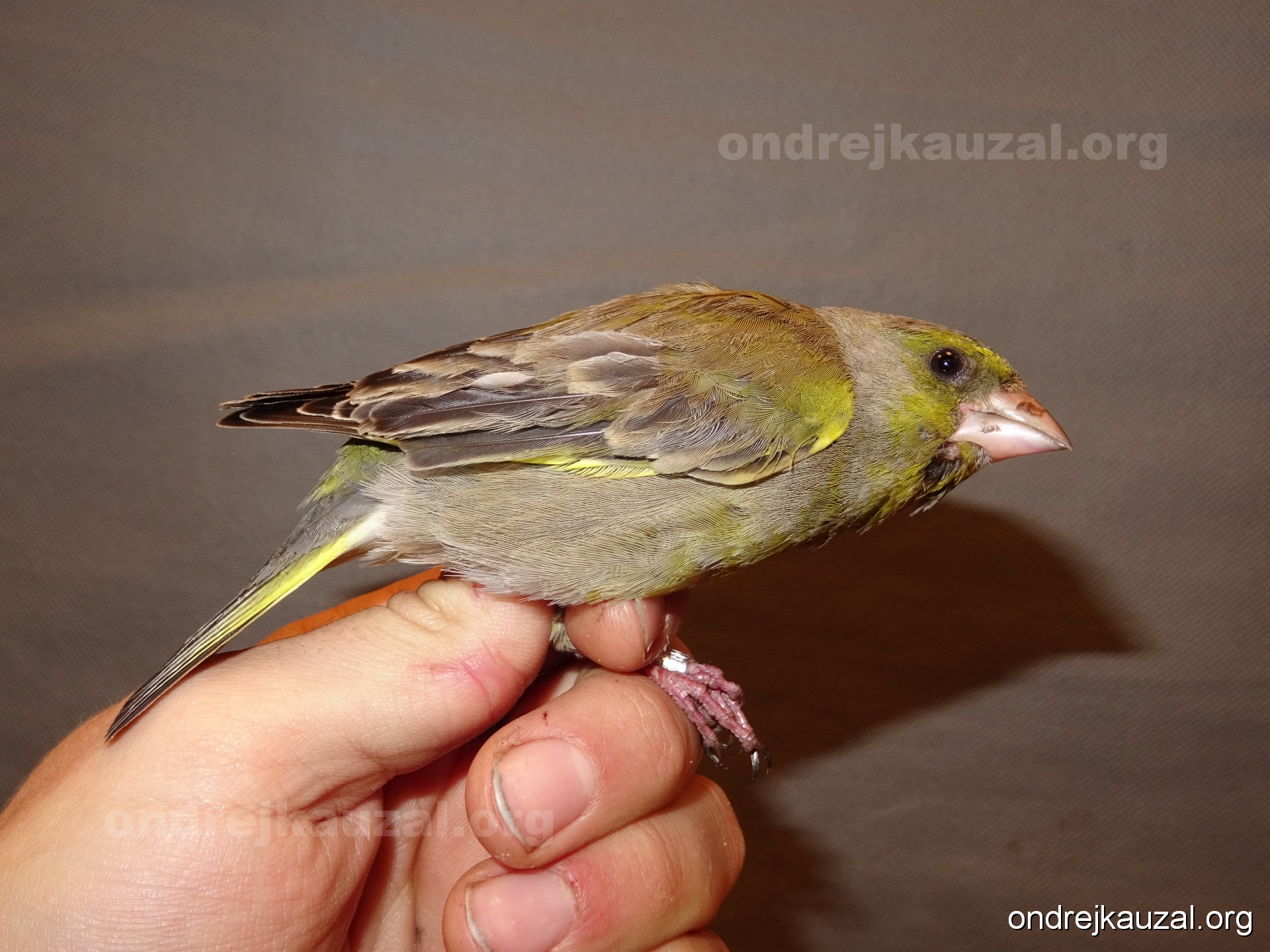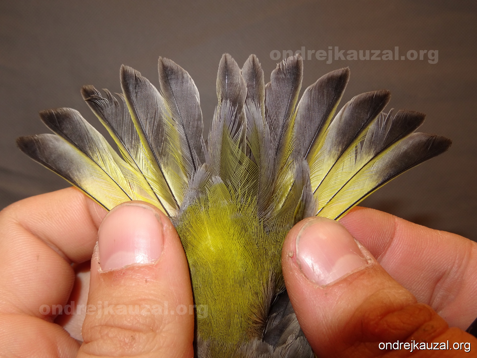 An interesting individual, albeit being in the first year of its life, it has moulted three of its primaries (P5 – P7). Greenfinches occasionally include moult of some primaries during their partial postjuvenile moult.