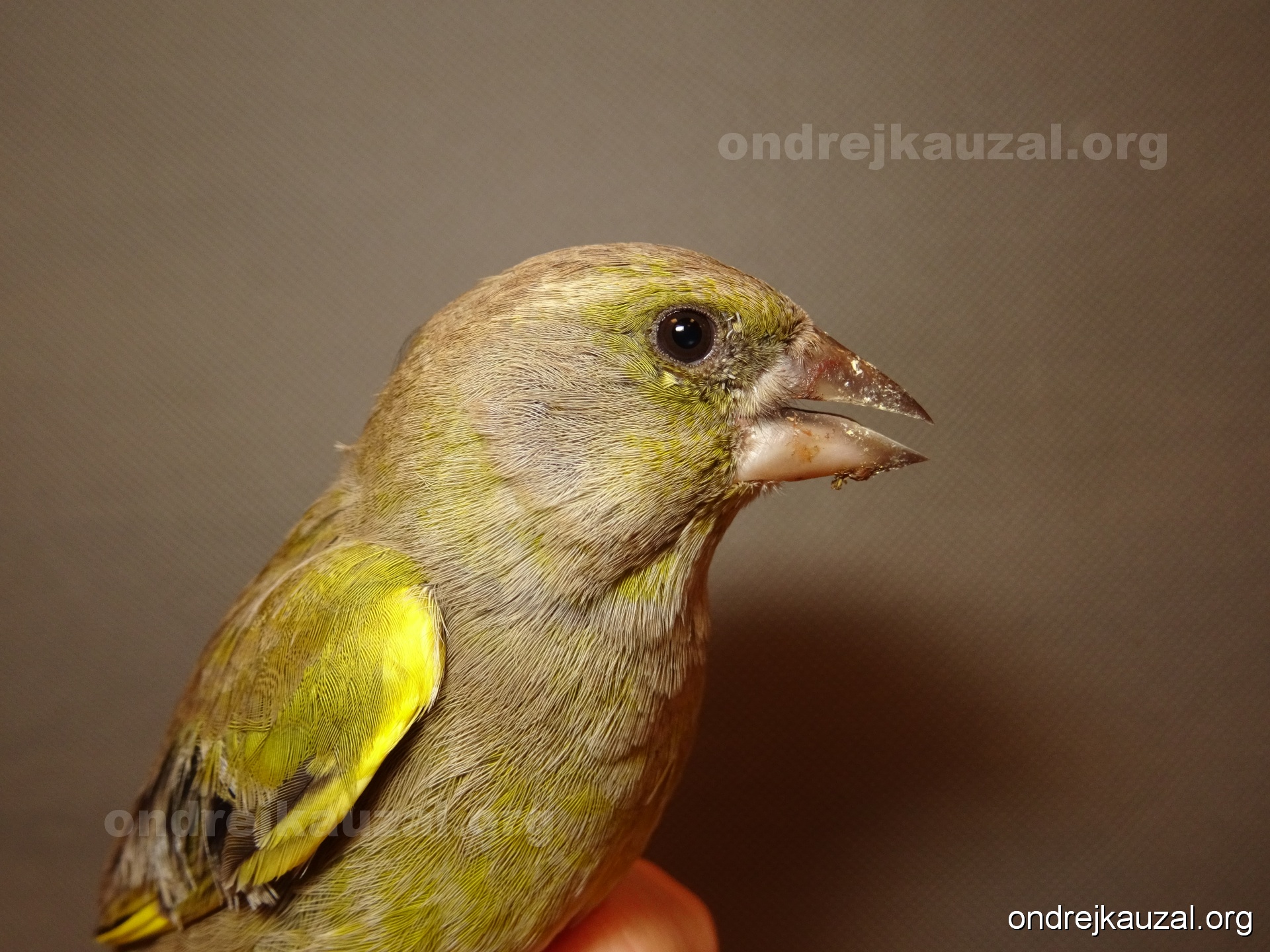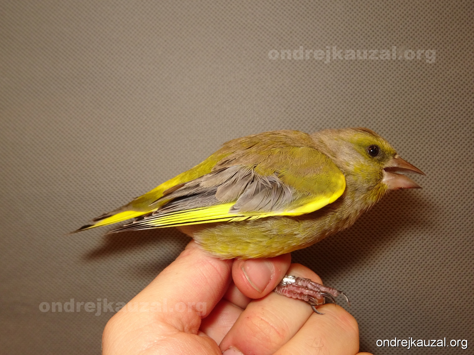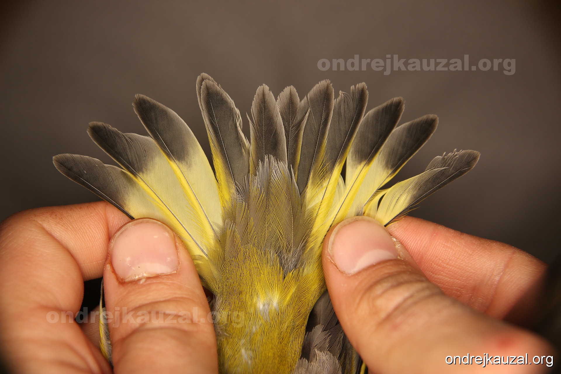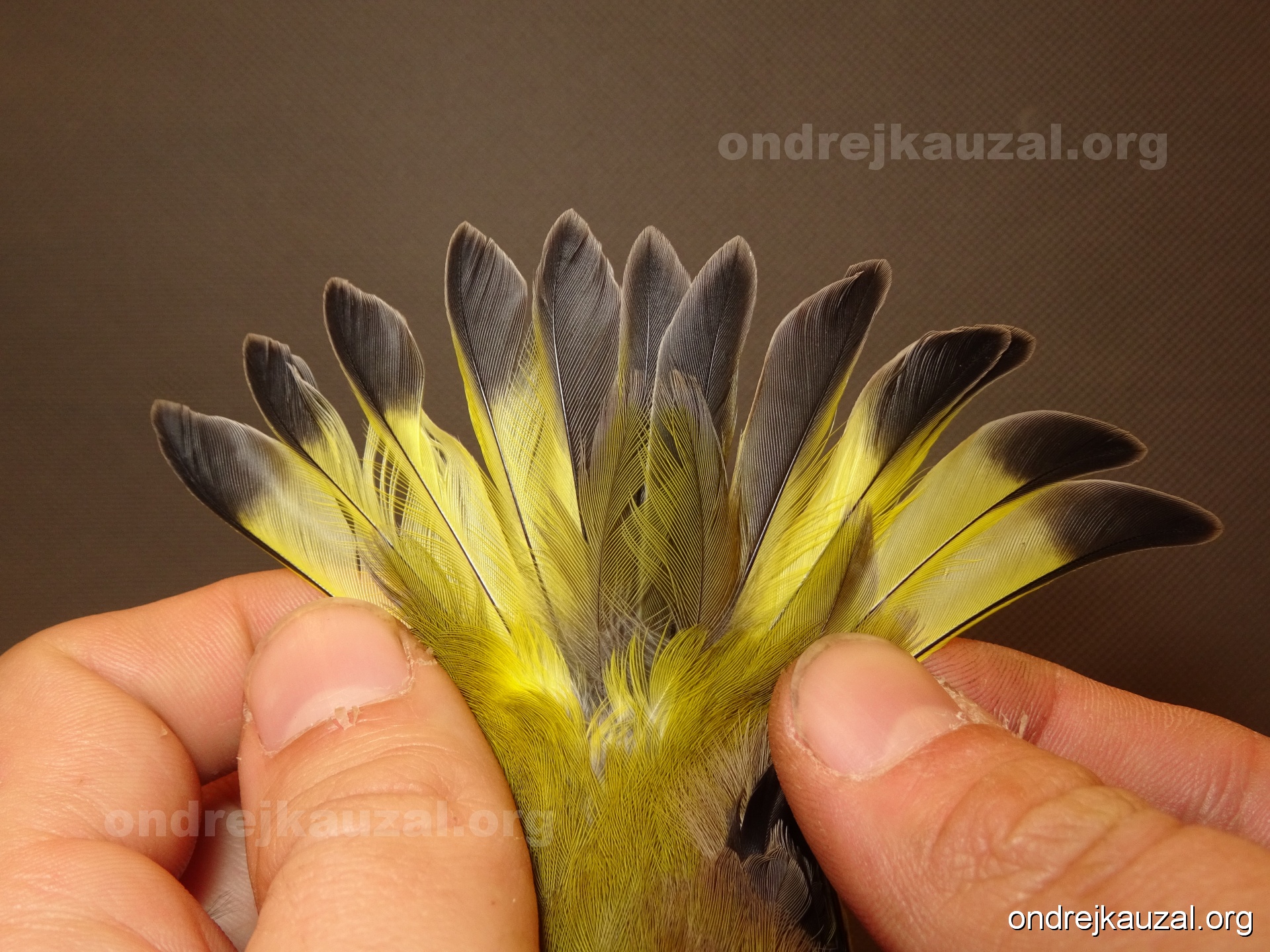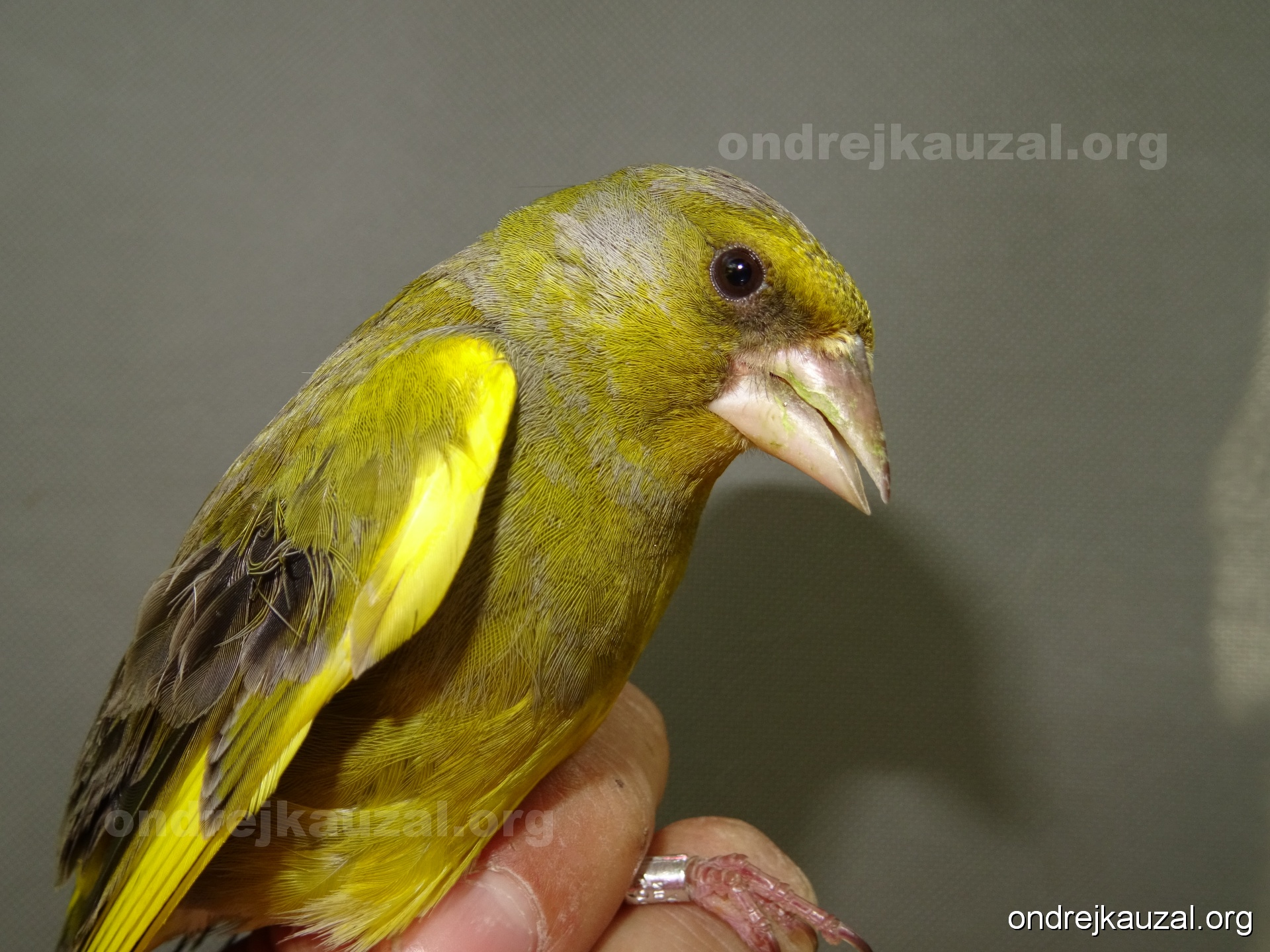 An interesting individual, albeit being in the first year of its life, it has moulted three of its primaries (P5 – P7). Greenfinches occasionally include moult of some primaries during their partial postjuvenile moult.