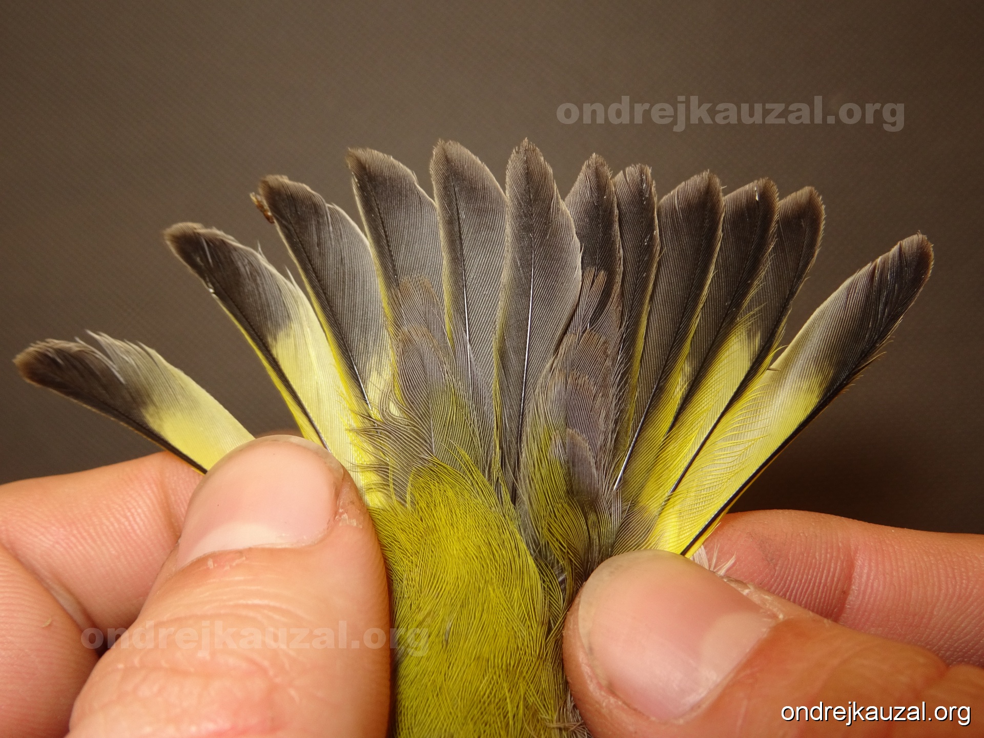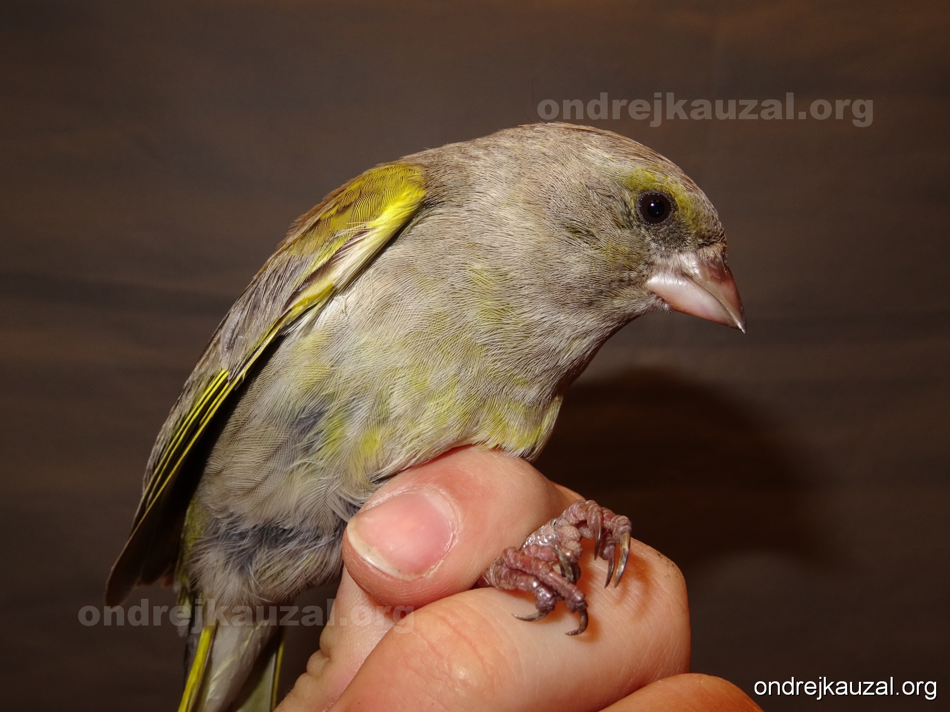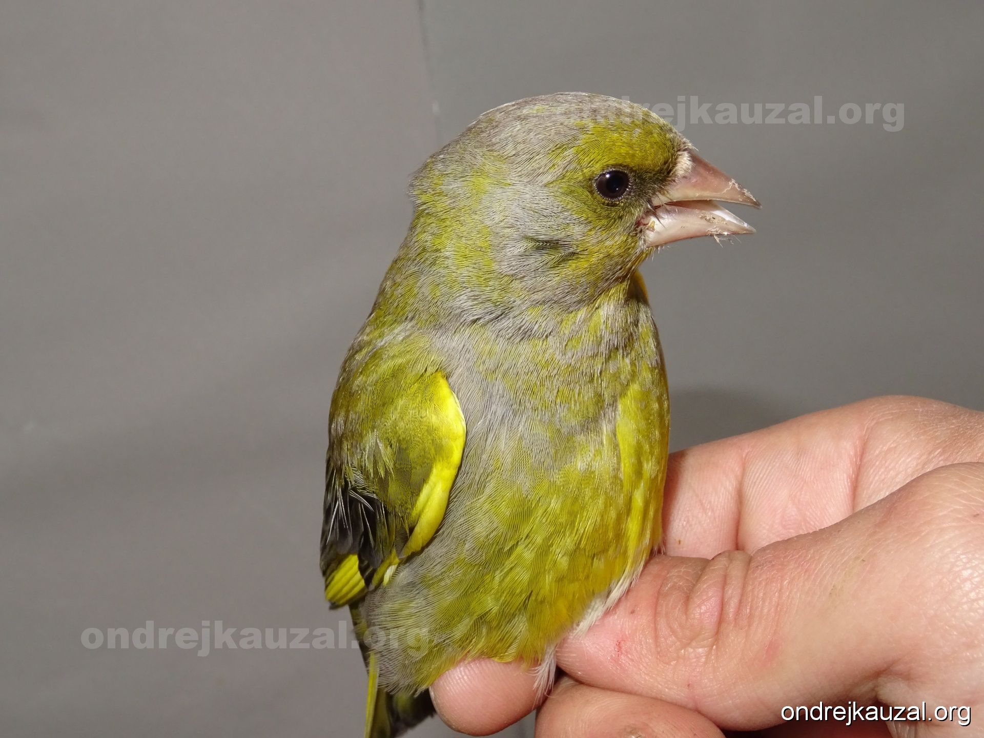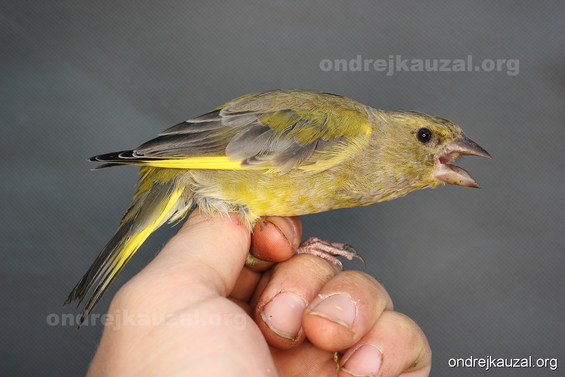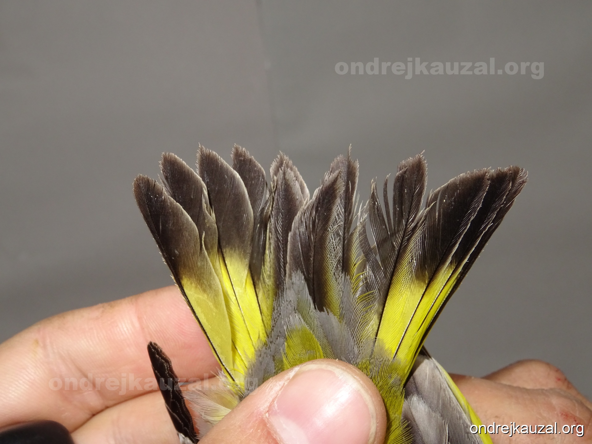 An interesting individual, albeit being in the first year of its life, it has moulted three of its primaries (P5 – P7). Greenfinches occasionally include moult of some primaries during their partial postjuvenile moult.