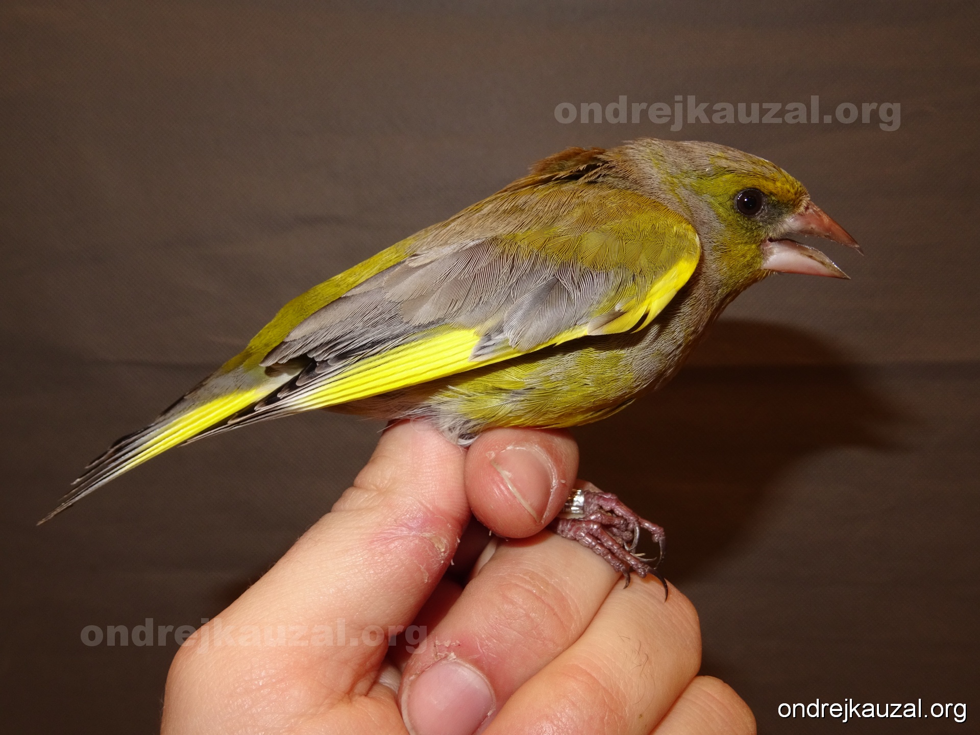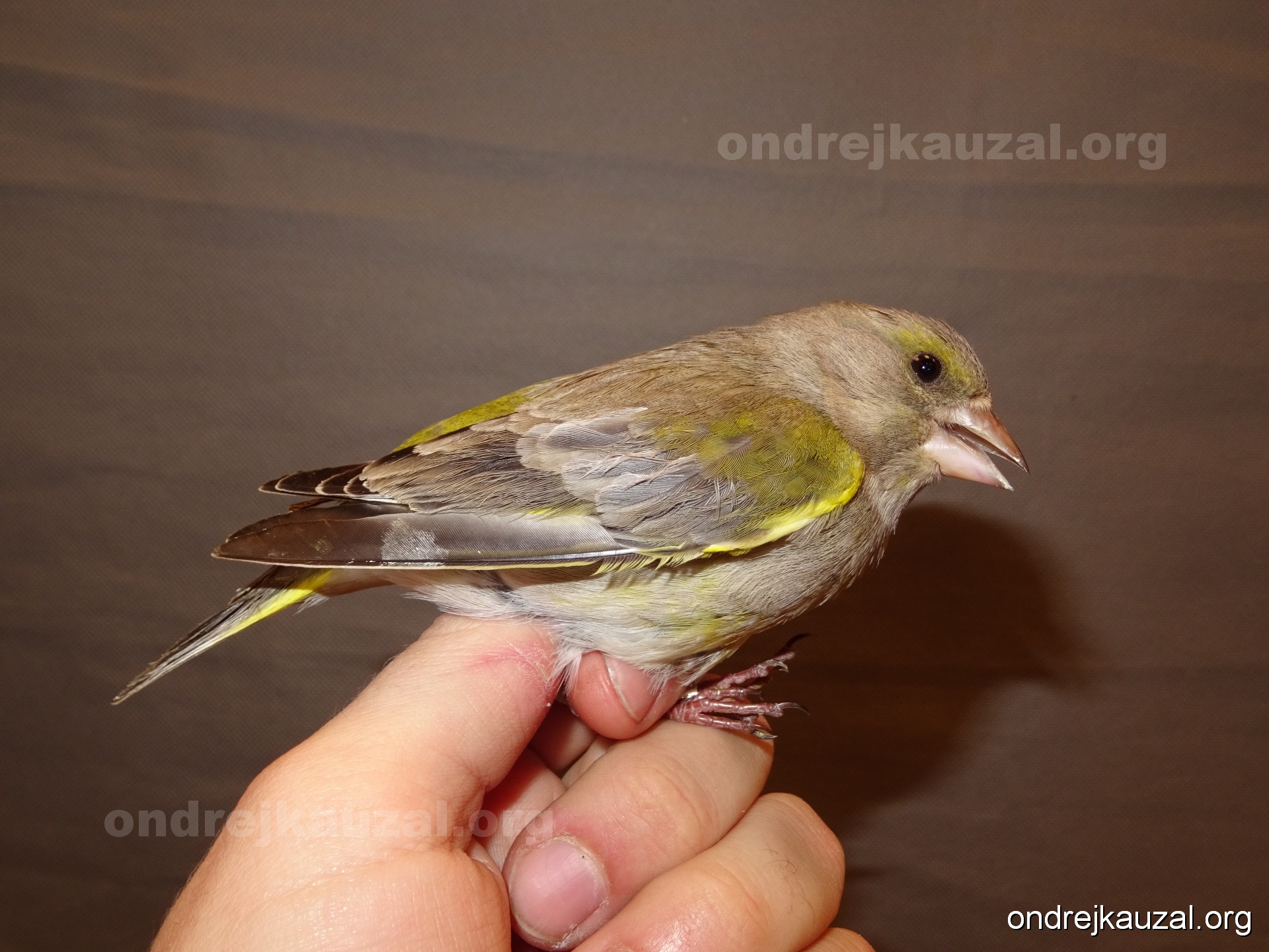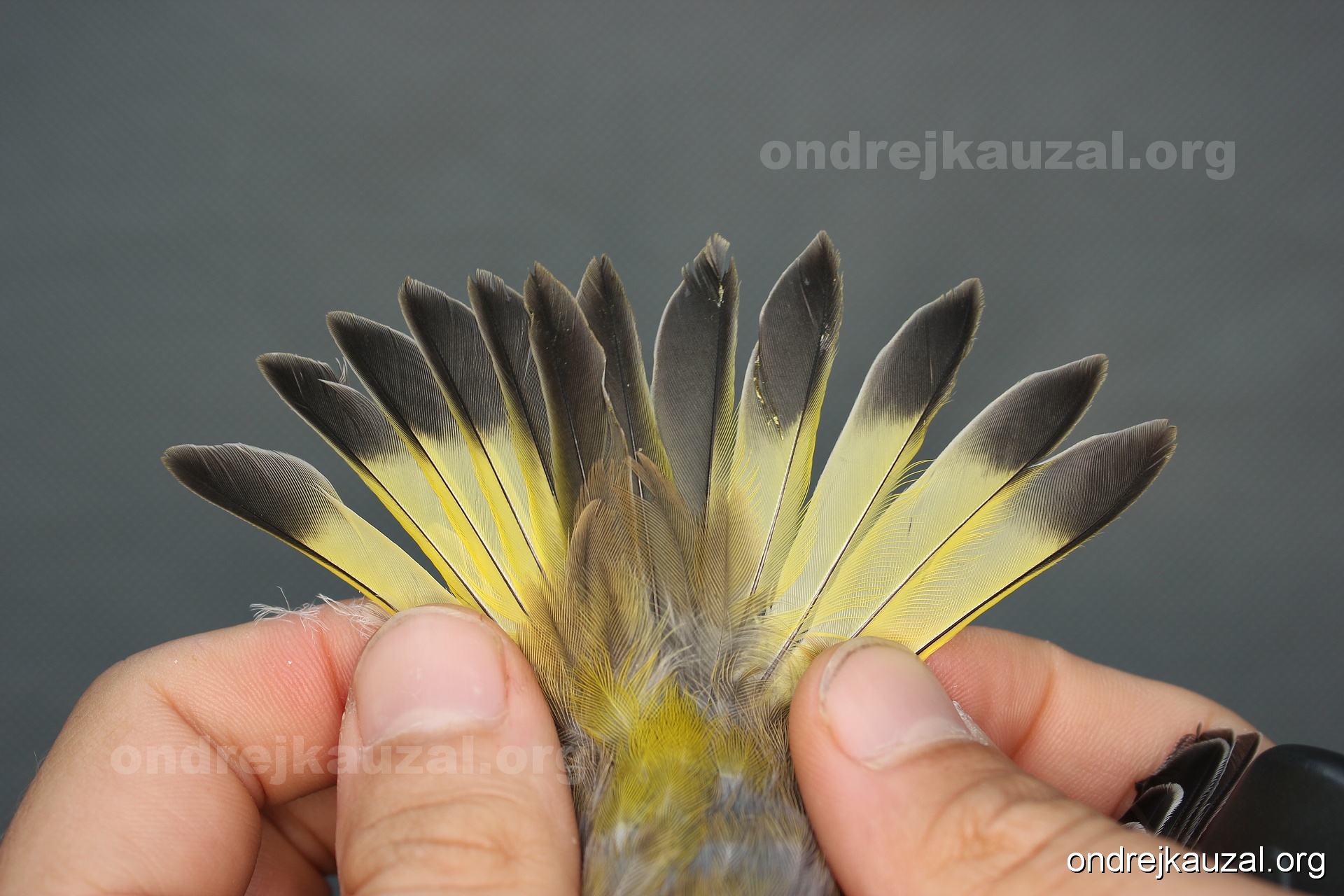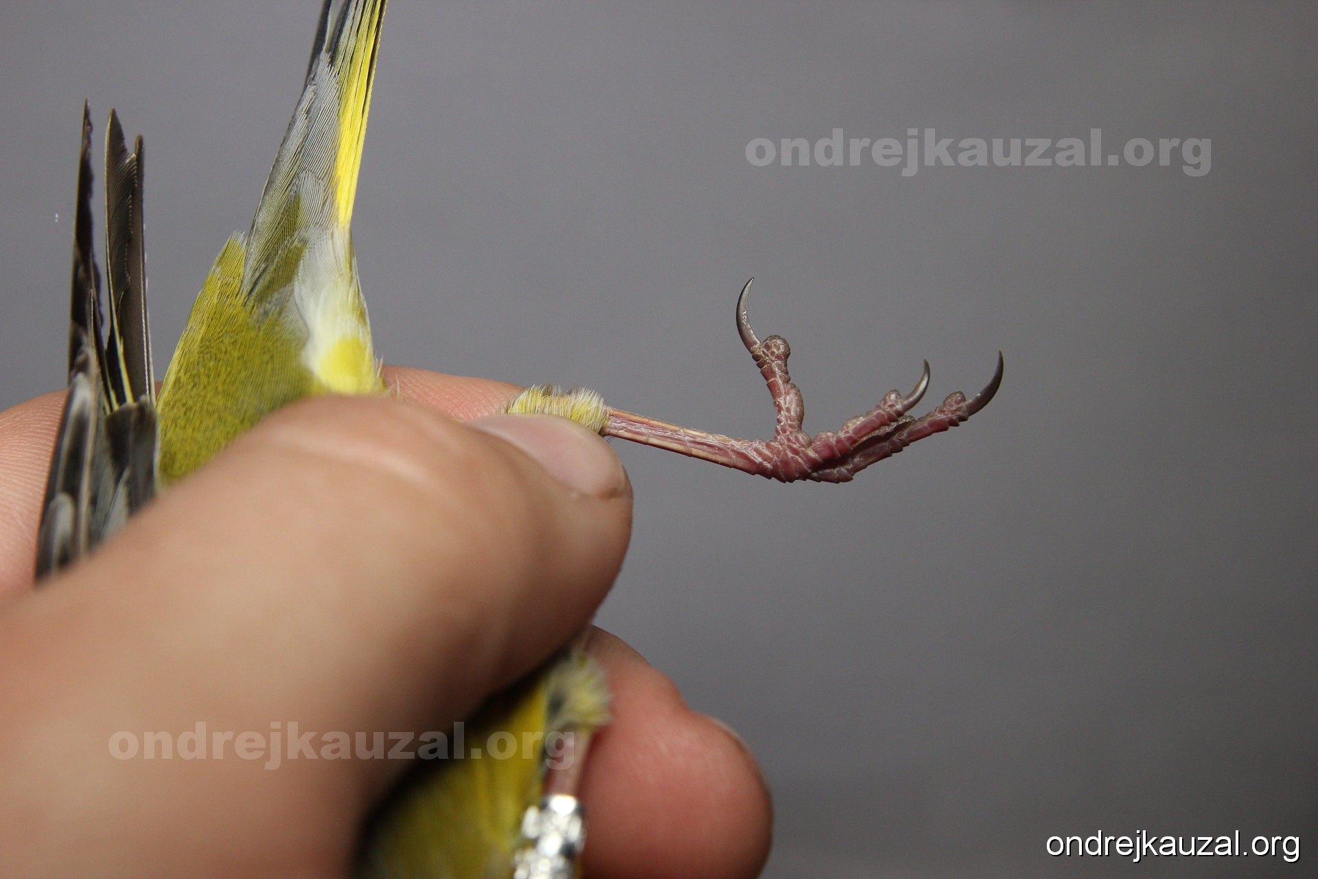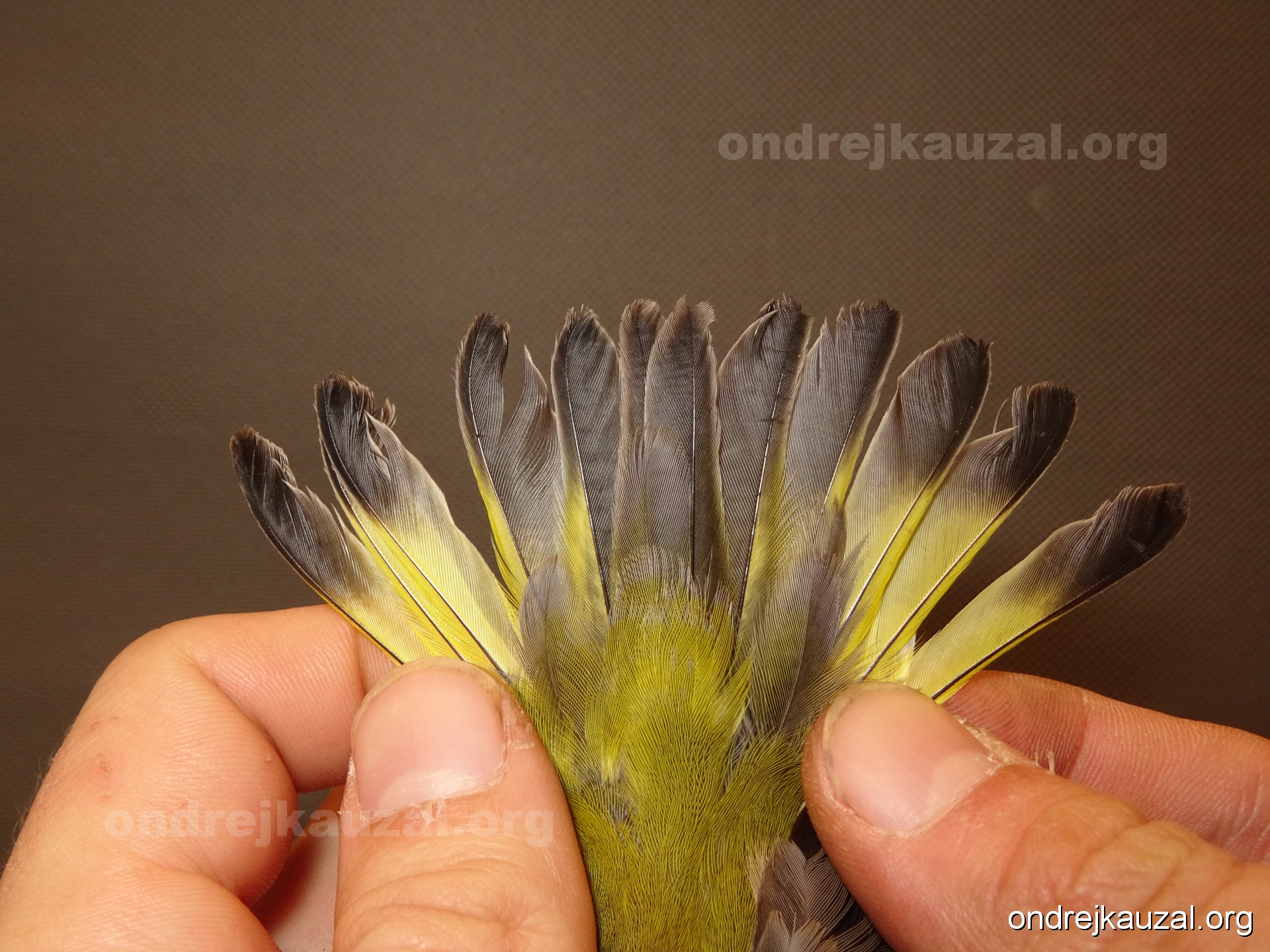 An interesting individual, albeit being in the first year of its life, it has moulted three of its primaries (P5 – P7). Greenfinches occasionally include moult of some primaries during their partial postjuvenile moult.