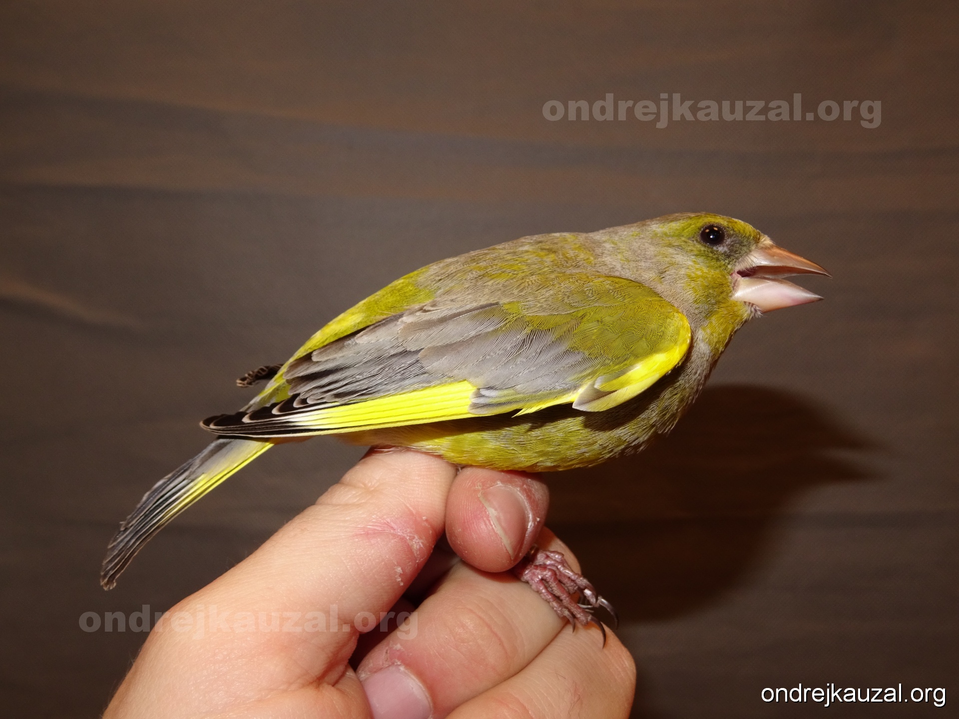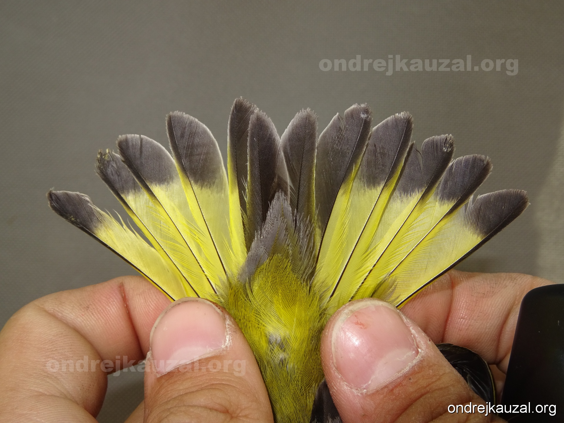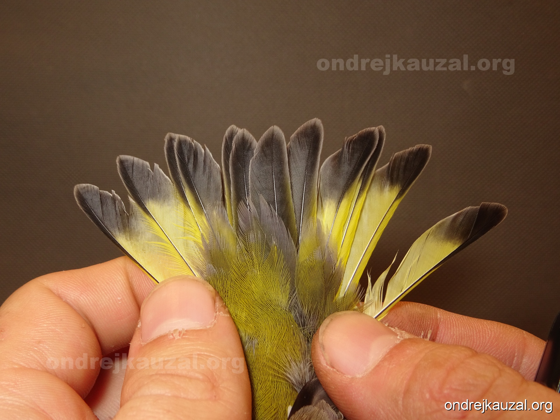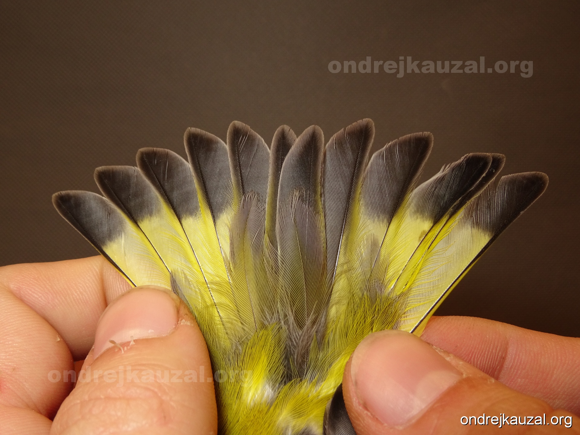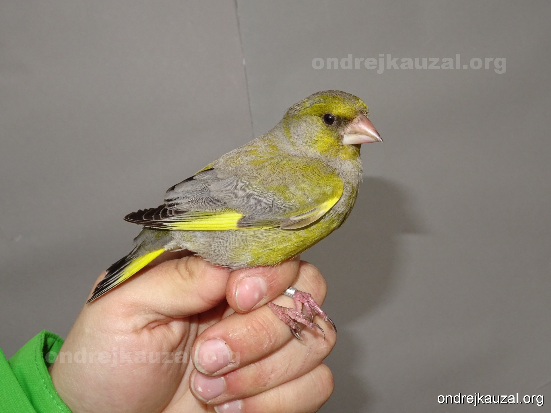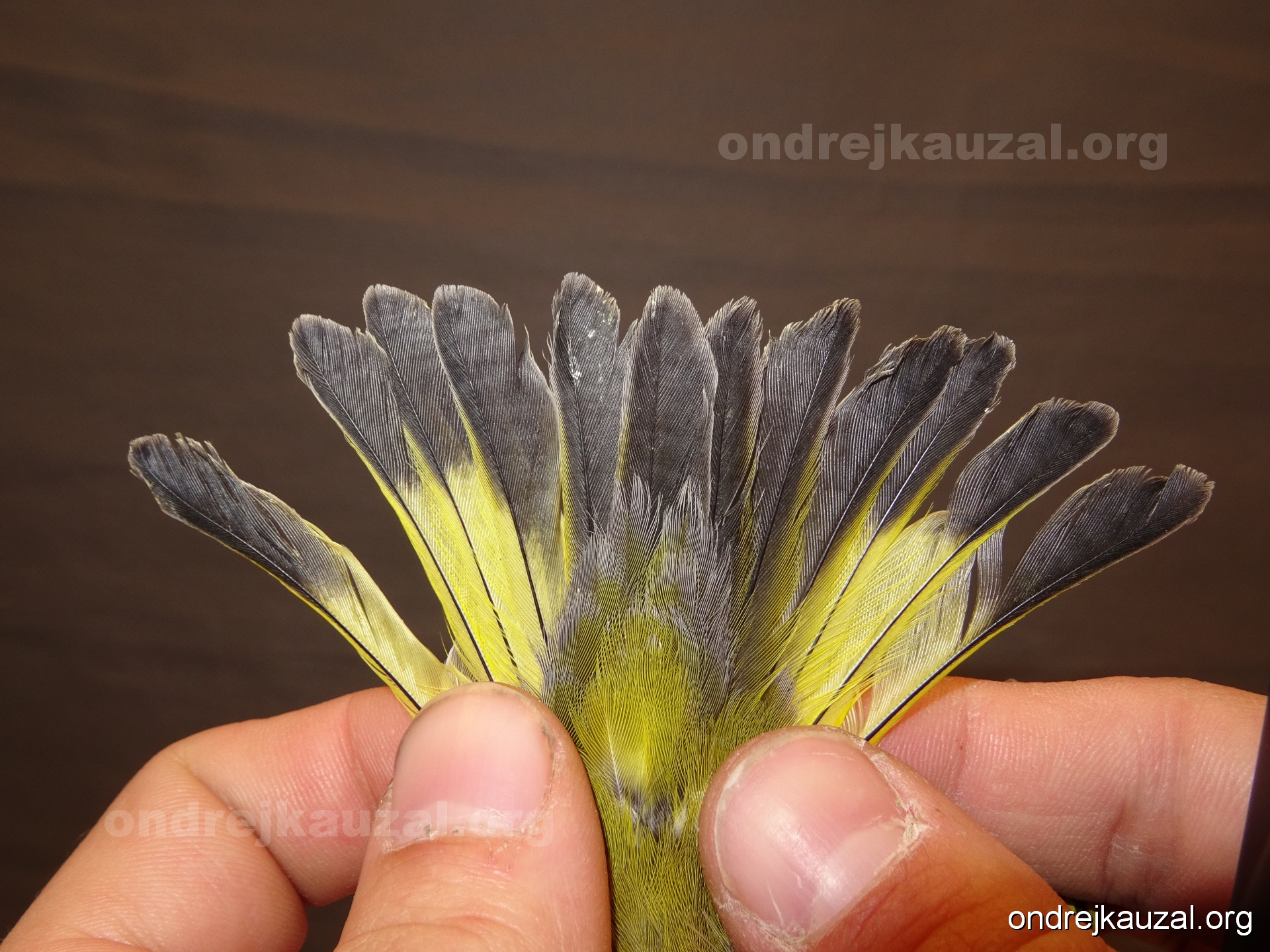An interesting individual, albeit being in the first year of its life, it has moulted three of its primaries (P5 – P7). Greenfinches occasionally include moult of some primaries during their partial postjuvenile moult.