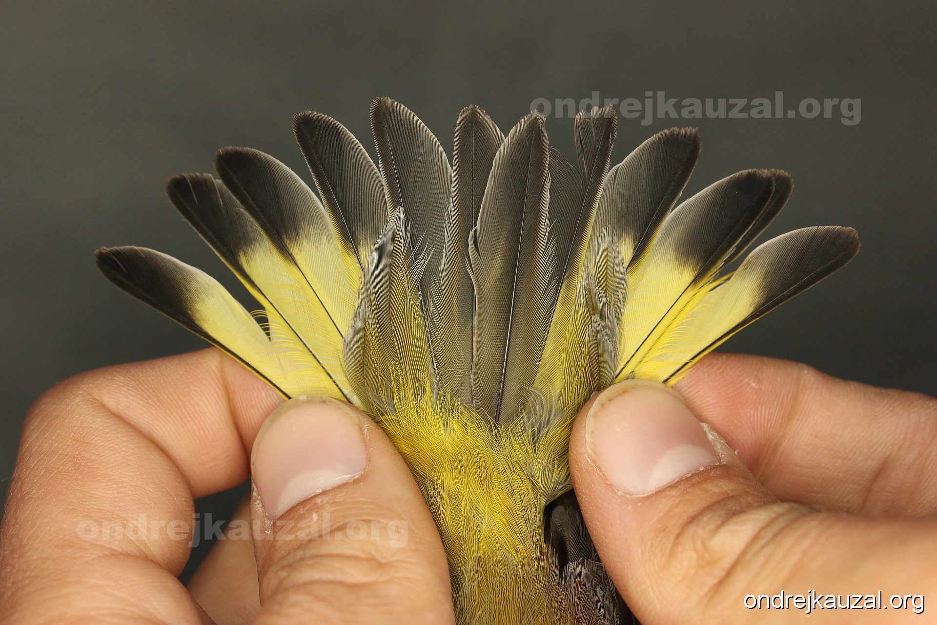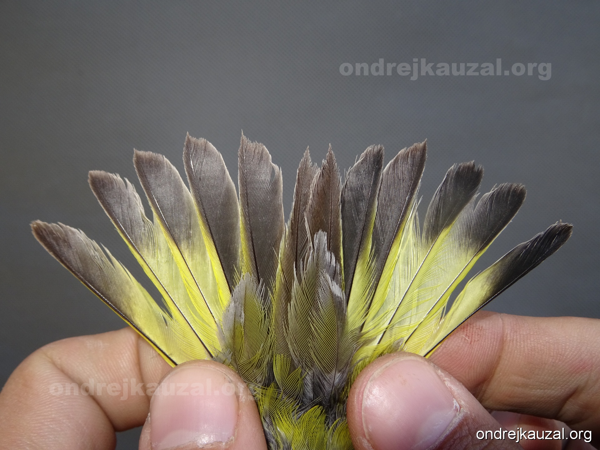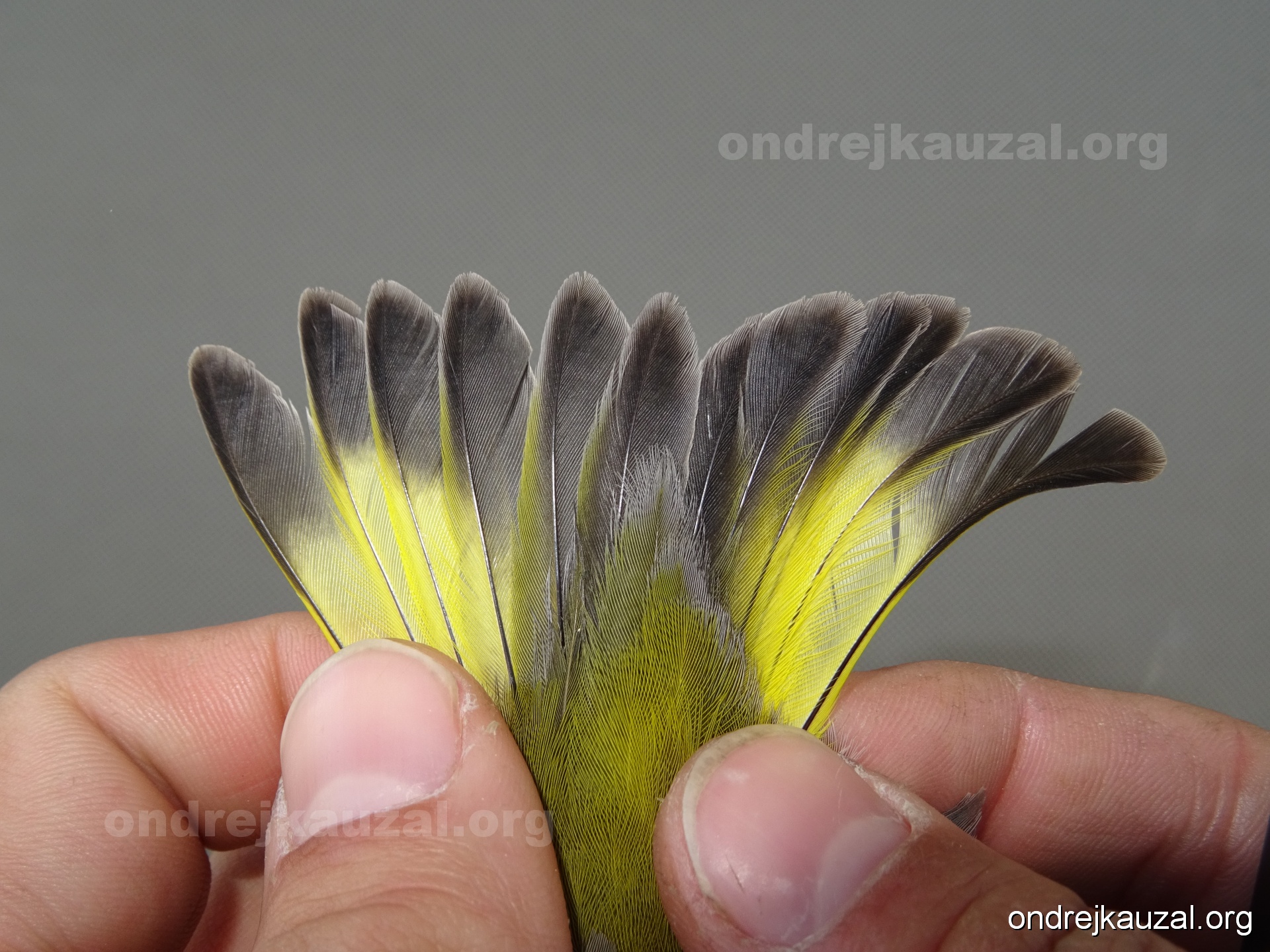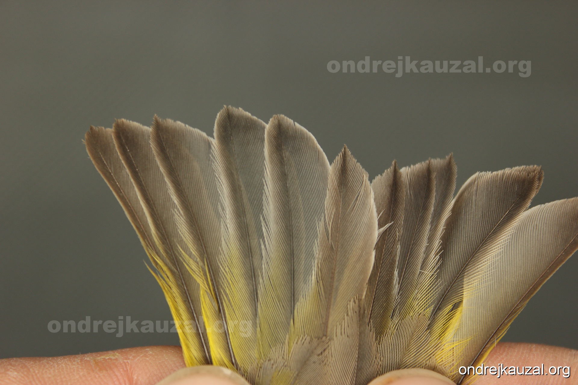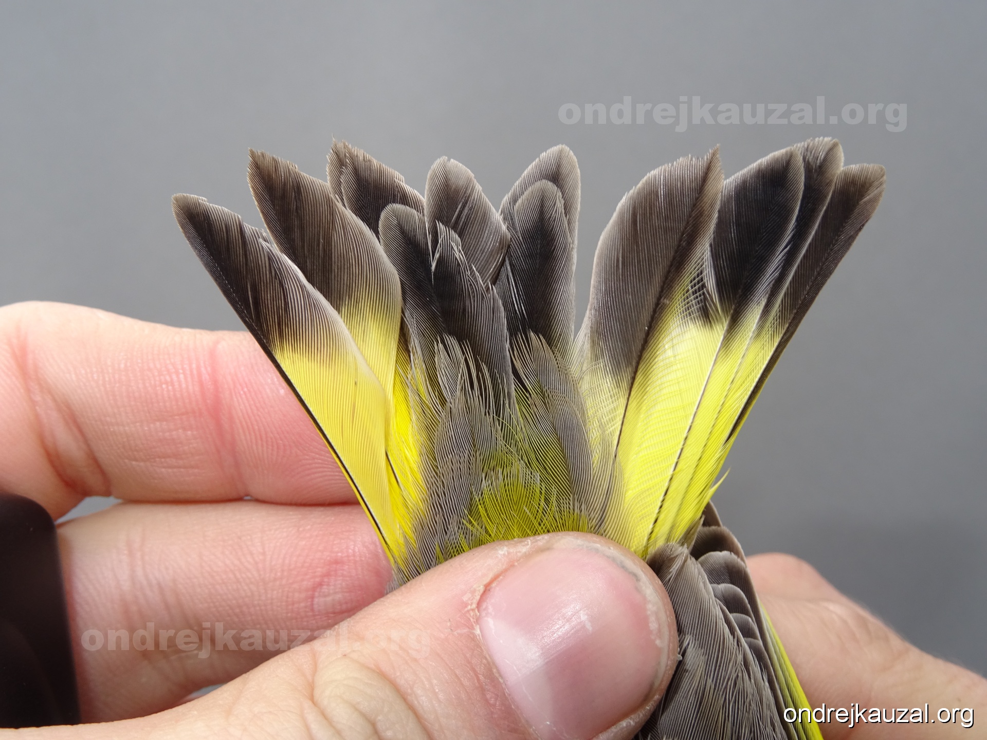 An interesting individual, albeit being in the first year of its life, it has moulted three of its primaries (P5 – P7). Greenfinches occasionally include moult of some primaries during their partial postjuvenile moult.