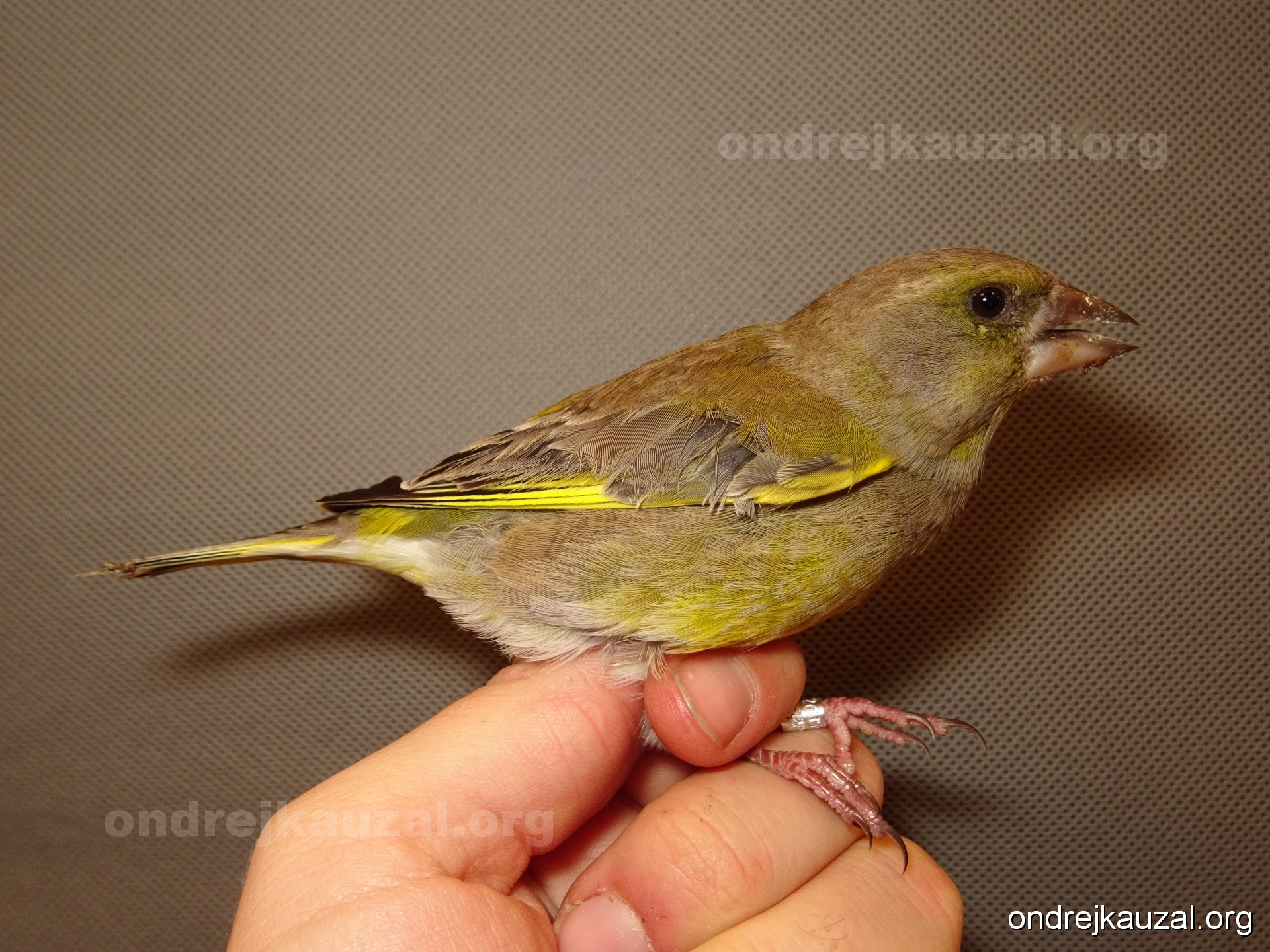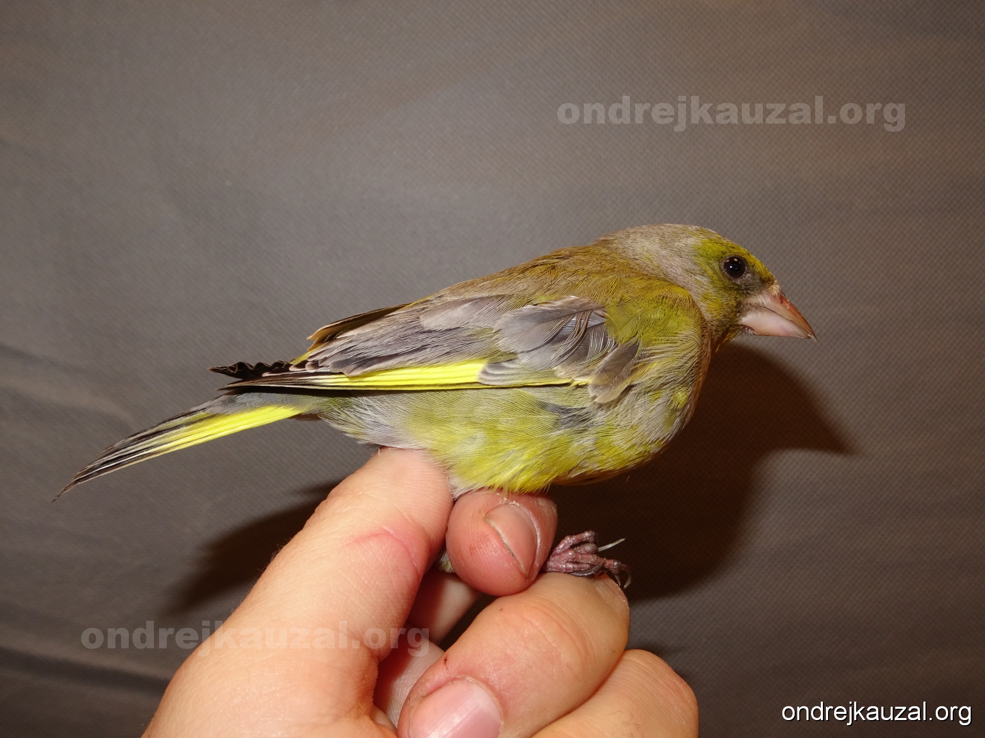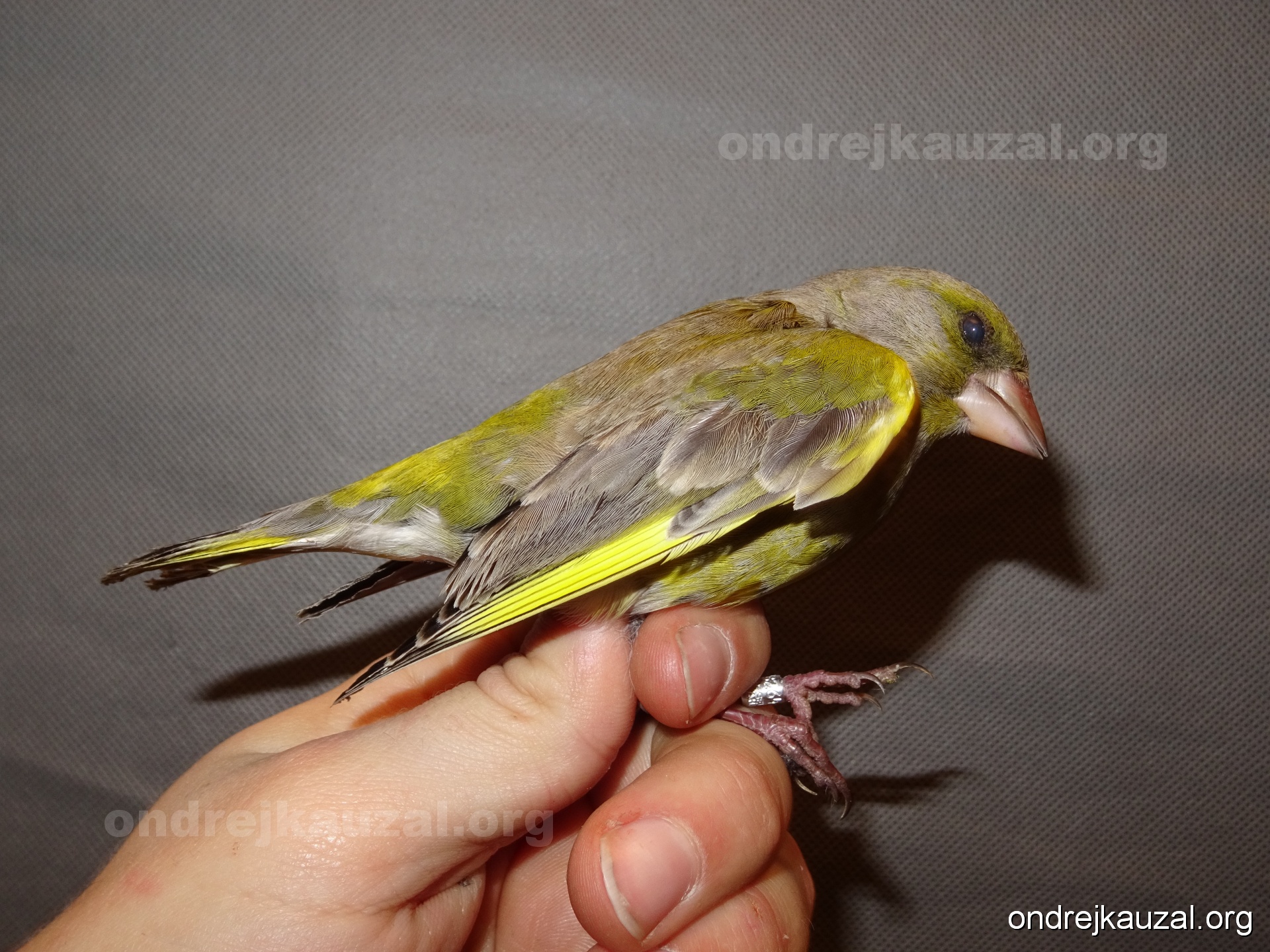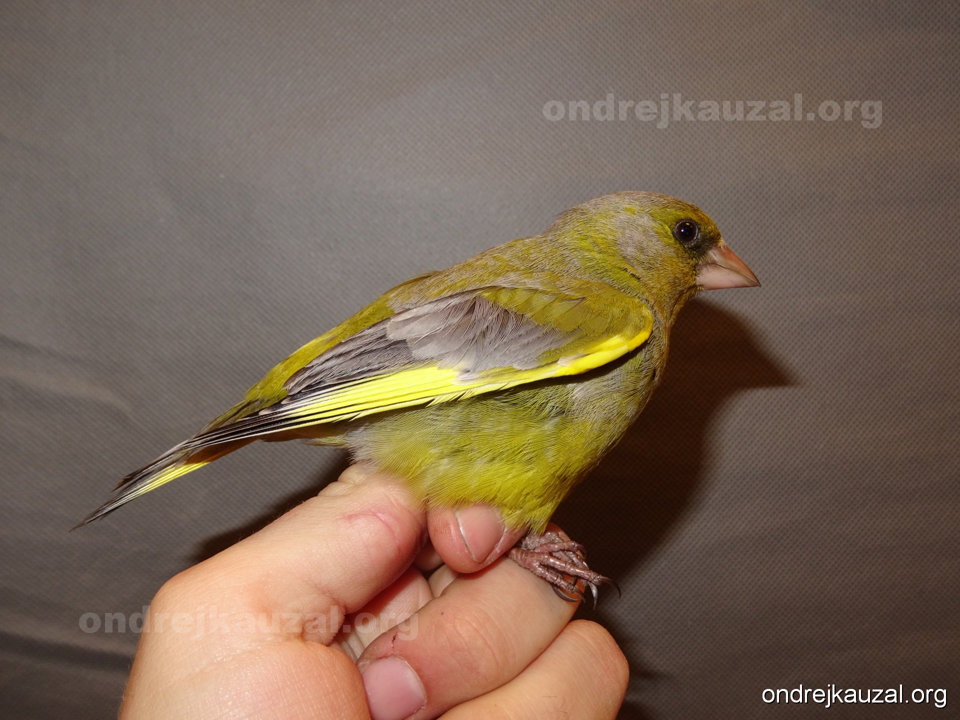 An interesting individual, albeit being in the first year of its life, it has moulted two of its primaries (P5 & P6). Greenfinches occasionally include moult of some primaries during their partial postjuvenile moult.