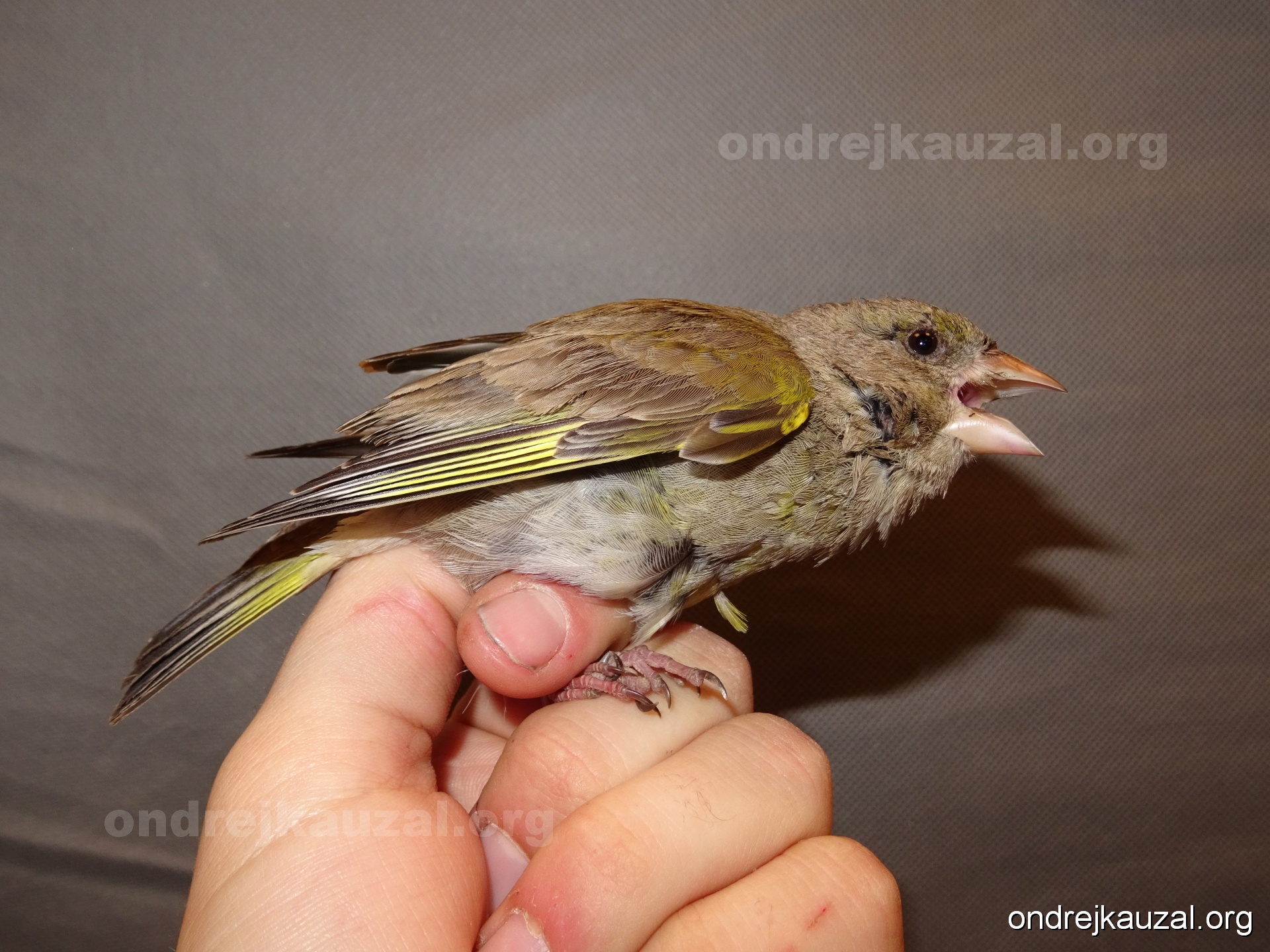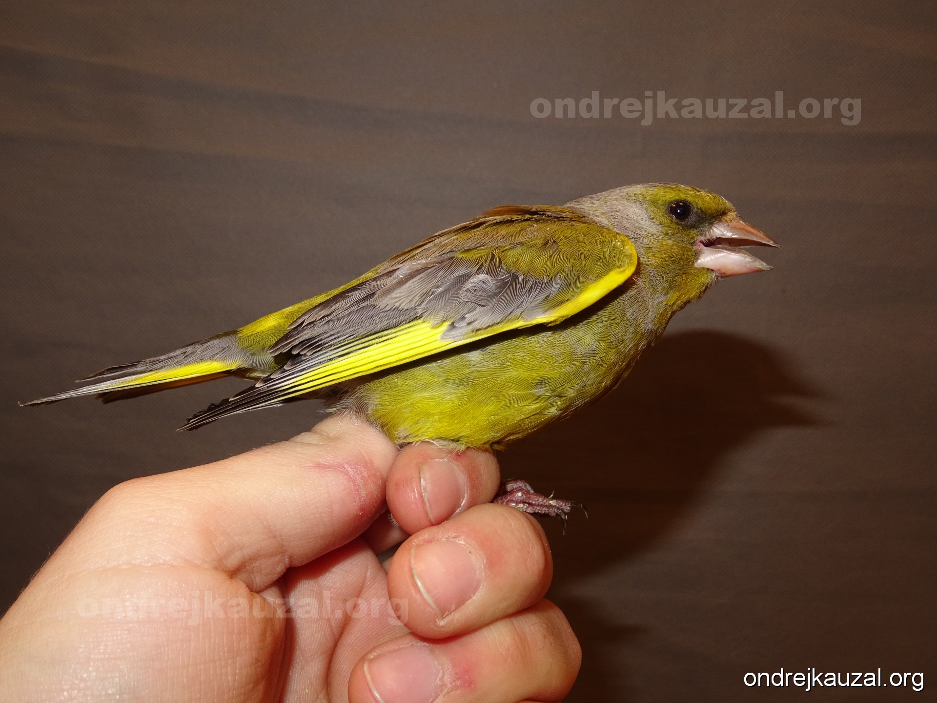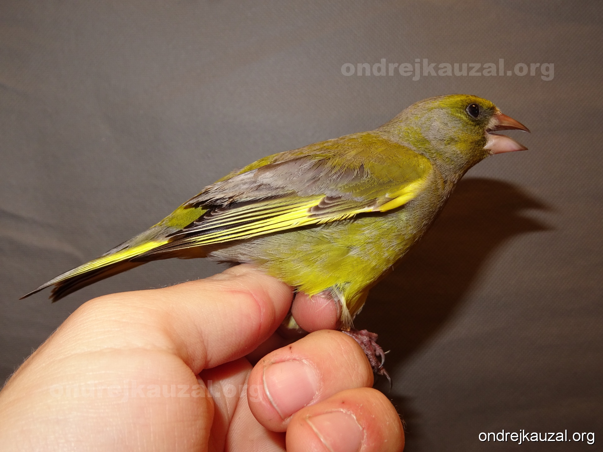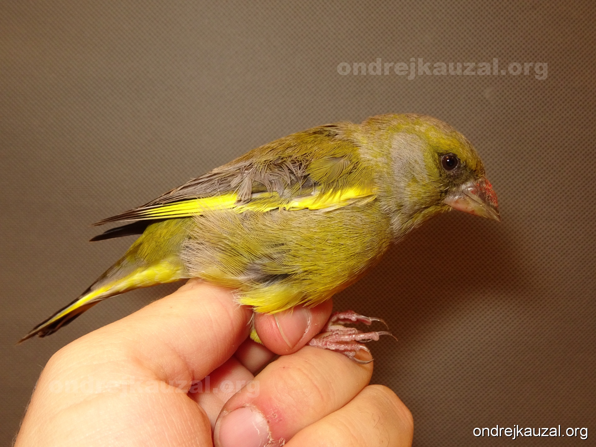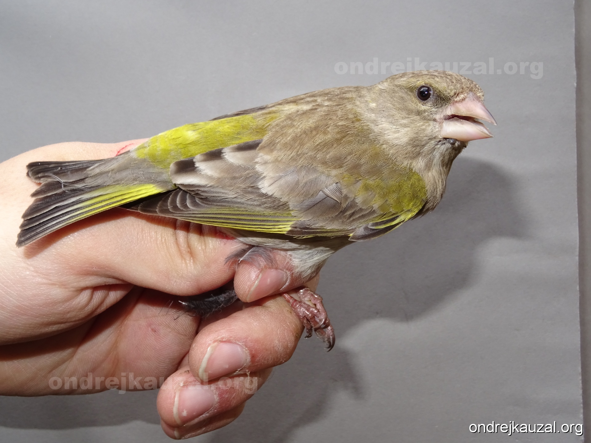 An interesting individual, albeit being in the first year of its life, it has moulted two of its primaries (P5 & P6). Greenfinches occasionally include moult of some primaries during their partial postjuvenile moult.